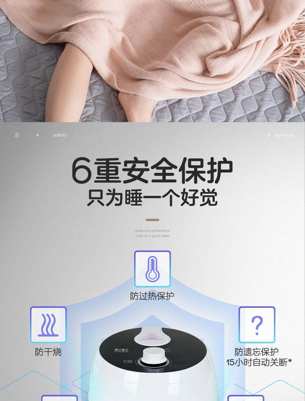 3、6重安全保护,安心好眠。技术支撑点:防过热保护、防倾倒保护、防遗忘保护、防干烧保护、防过流保护、防超温保护。