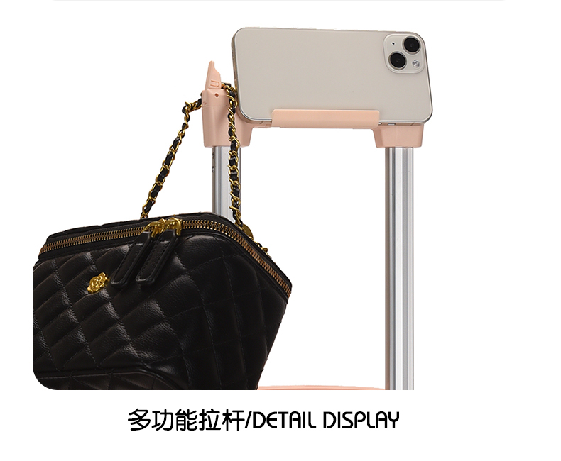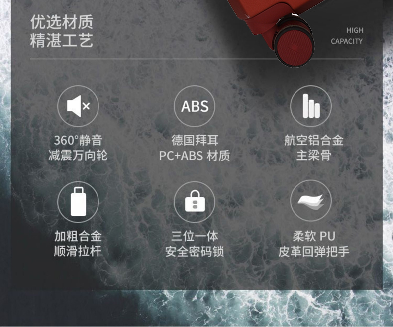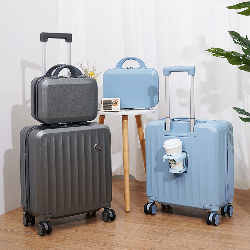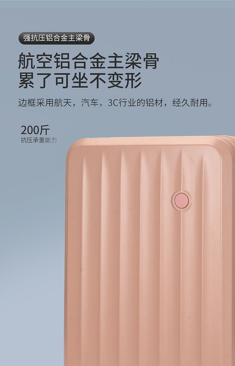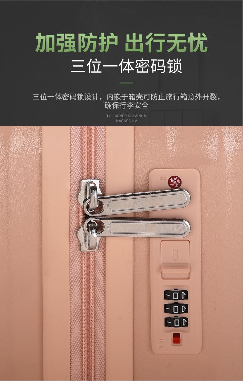 面料材质:ABS+PC 轮子:静音万向轮 拉杆:合金拉杆 颜色:粉、白、红、灰、黑、蓝、绿; 尺寸:20+14寸:55*35*25cm+31*15*23cm (尺寸包含轮子)