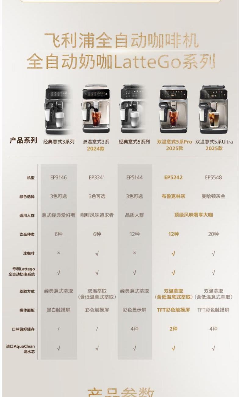 飞利浦(PHILIPS)意式全自动家用咖啡机EP5242