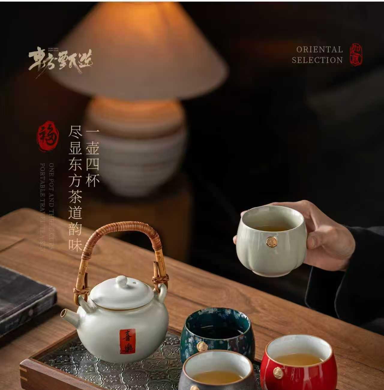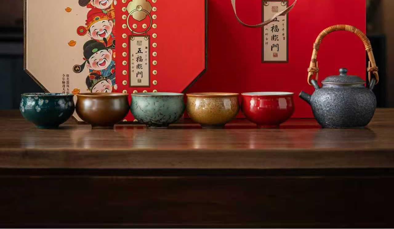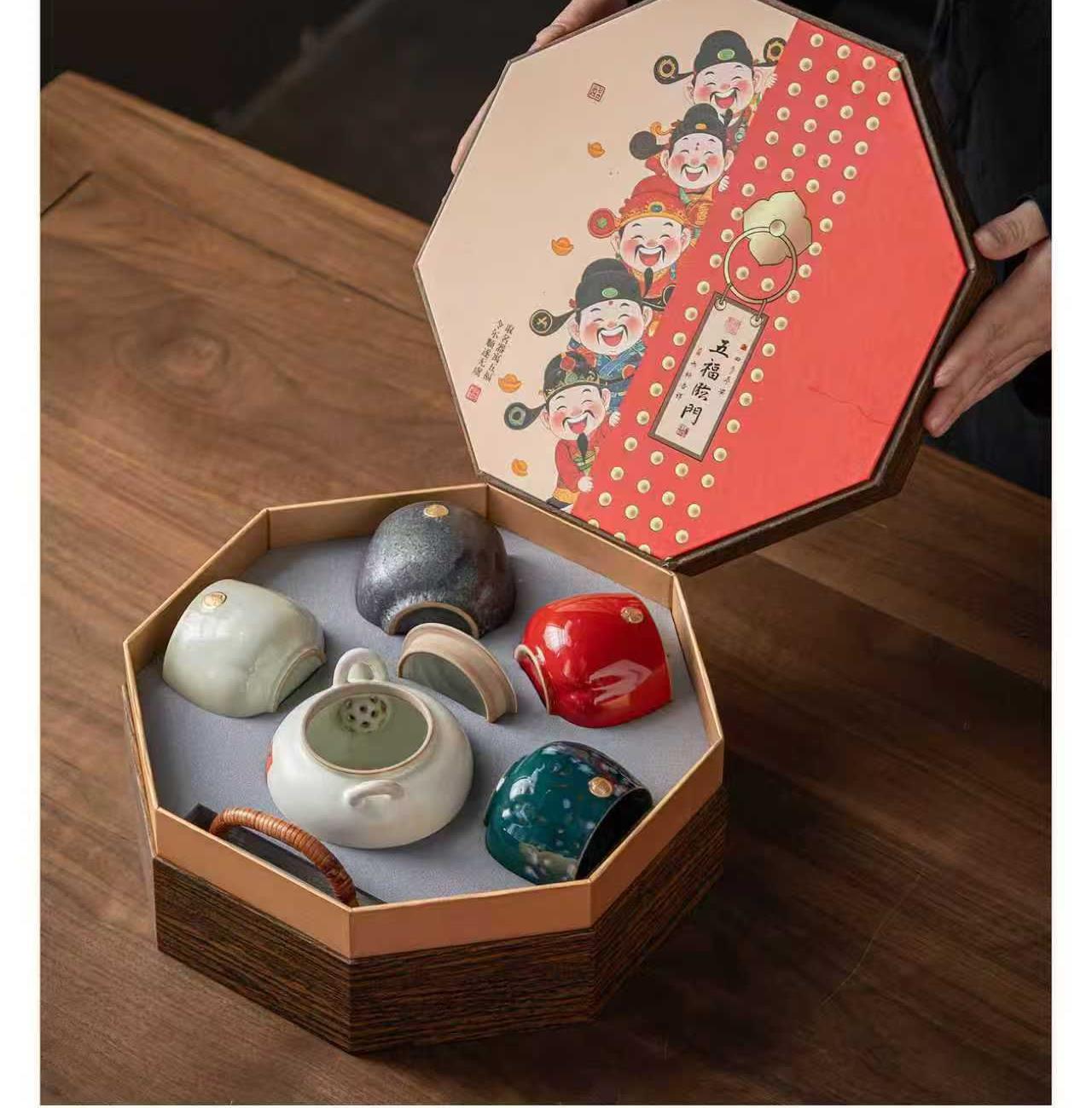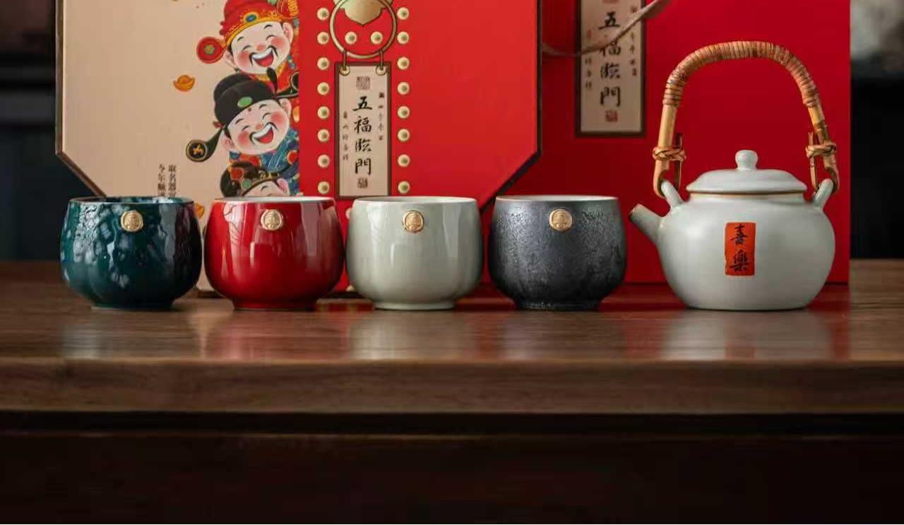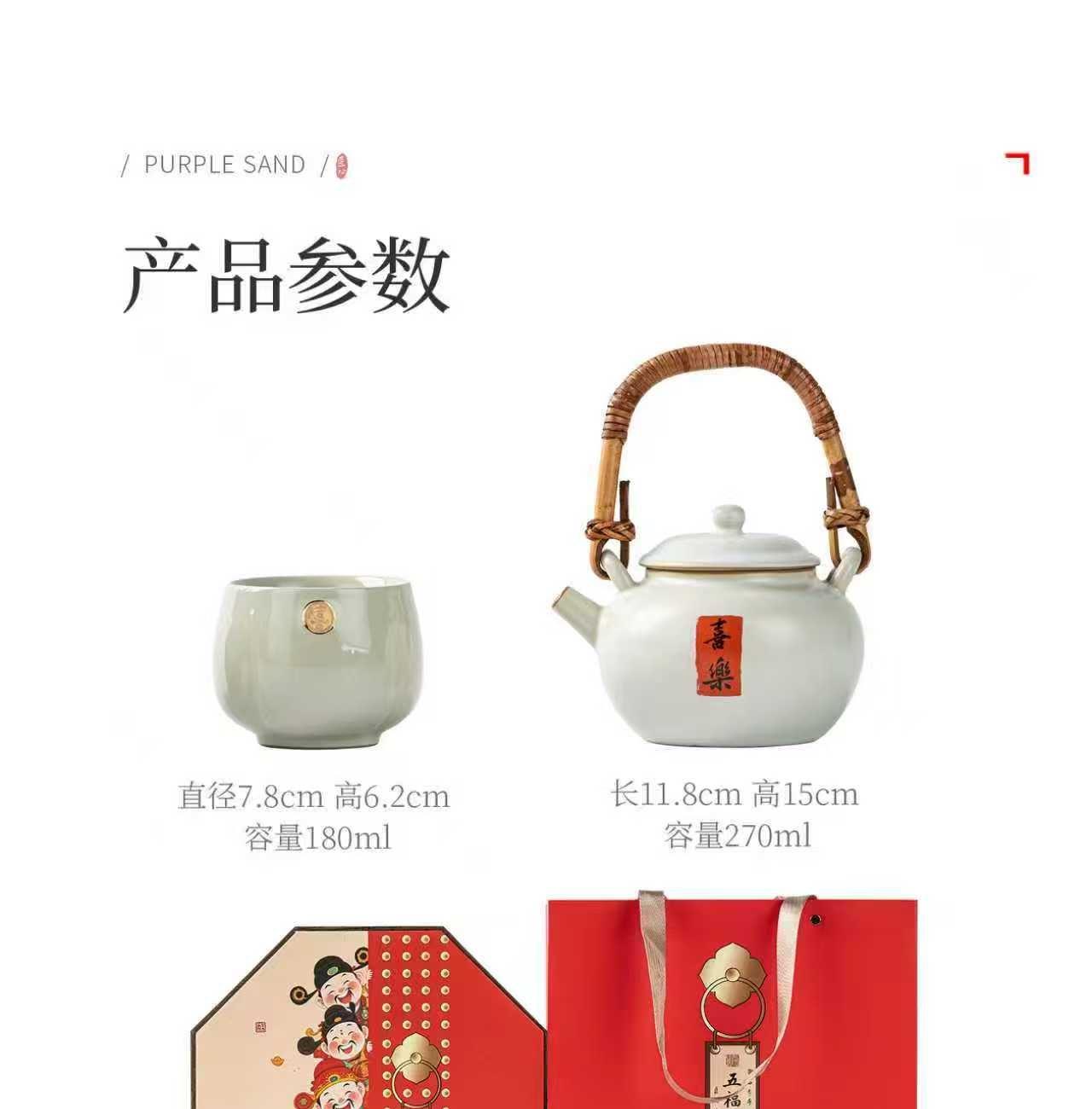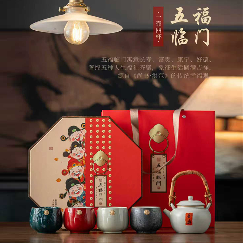 尾桥下窑五福临门四喜提梁陶瓷茶具套装新年伴手礼年会节日纪念品