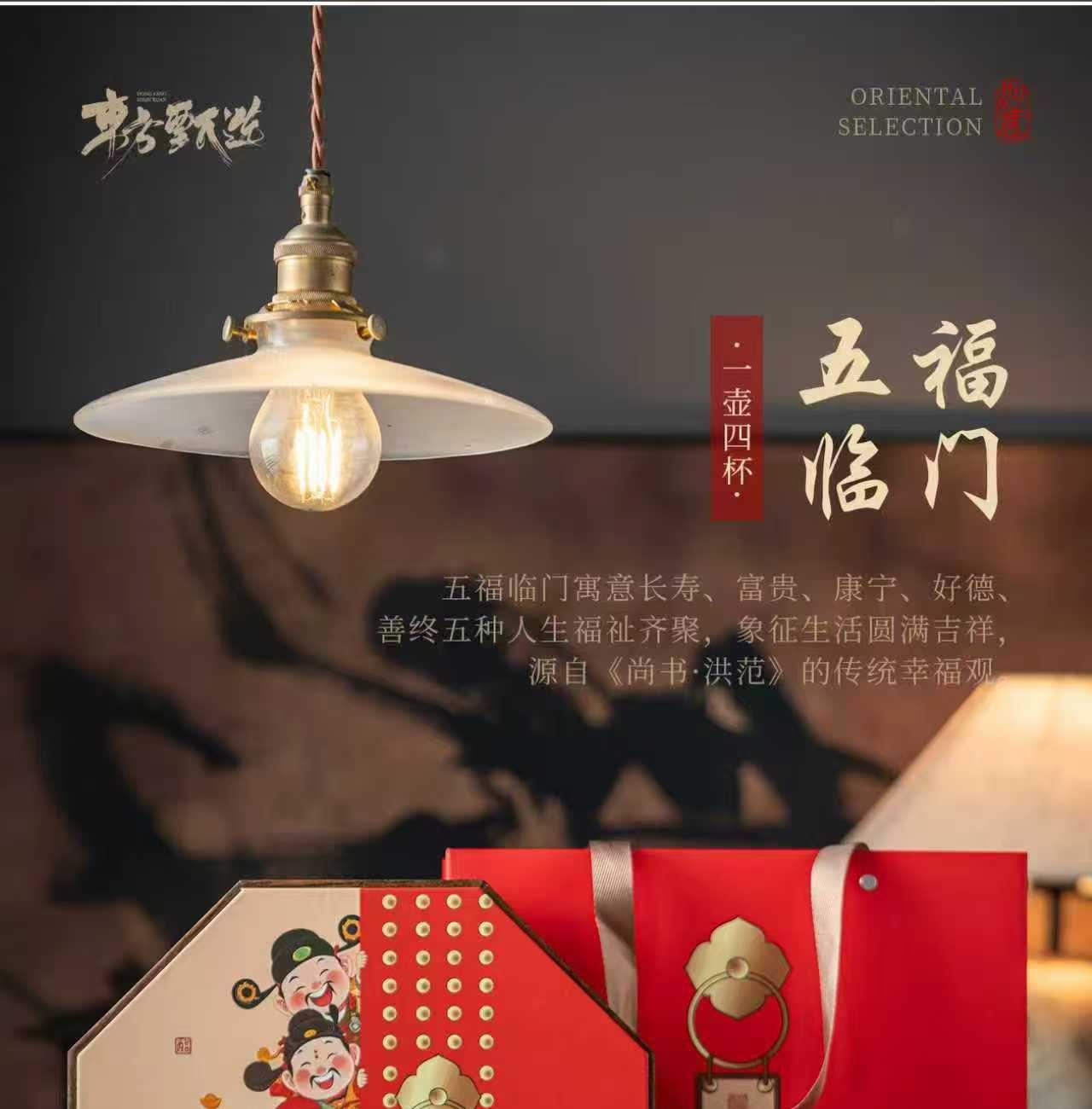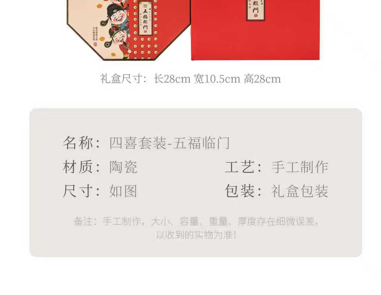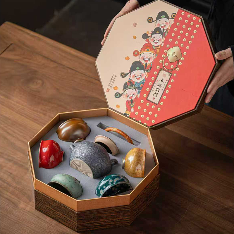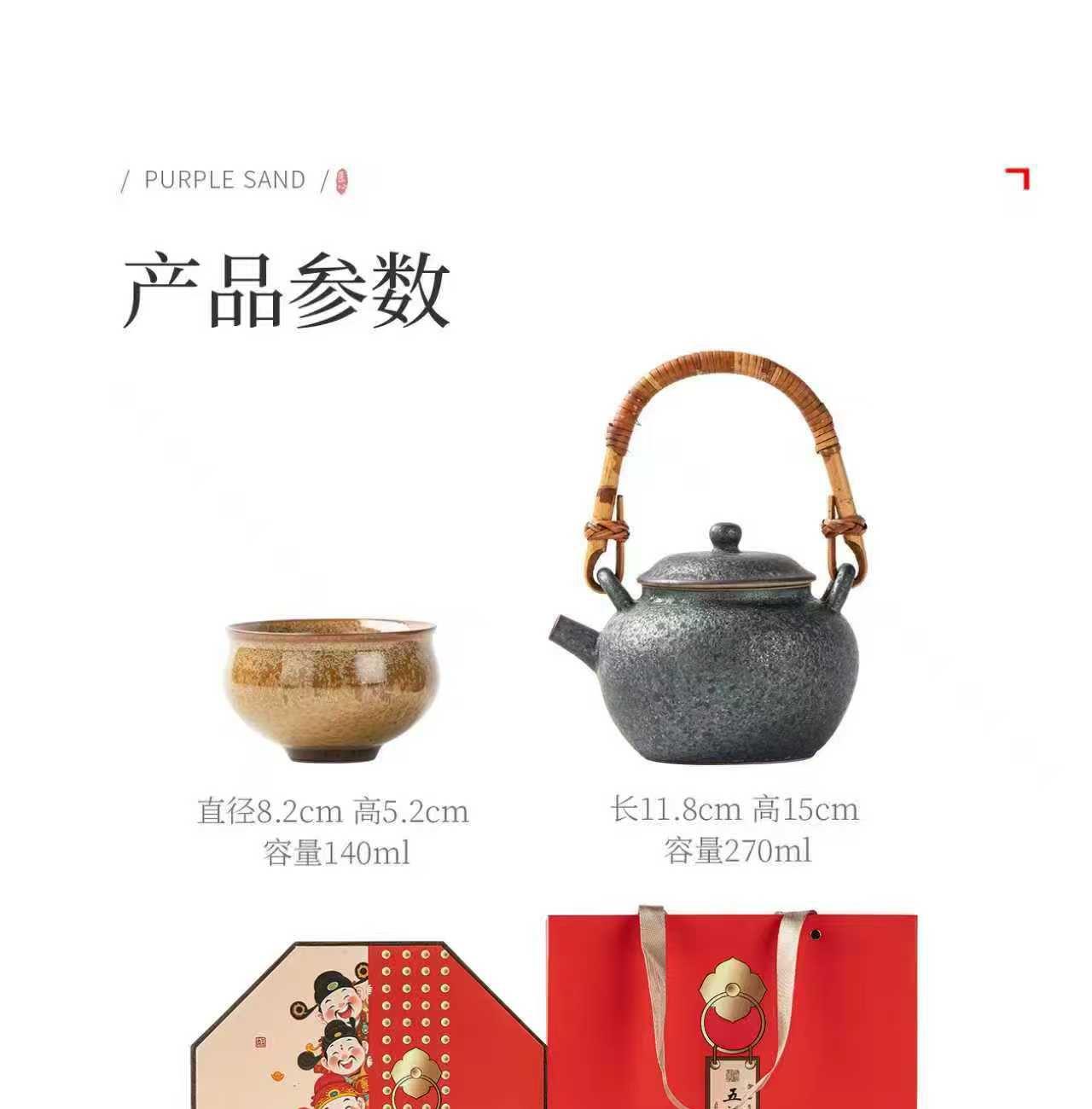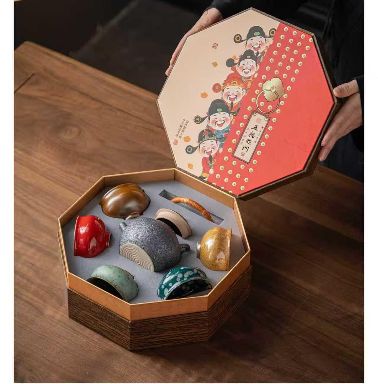 尾桥下窑五福临门四喜提梁陶瓷茶具套装新年伴手礼年会节日纪念品