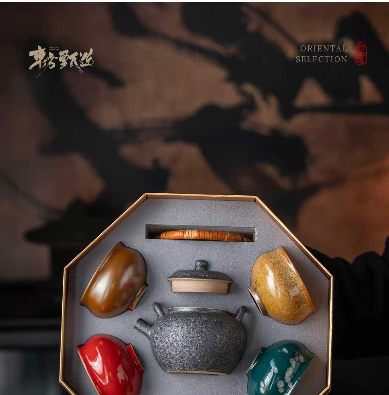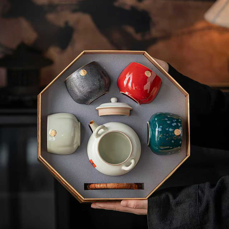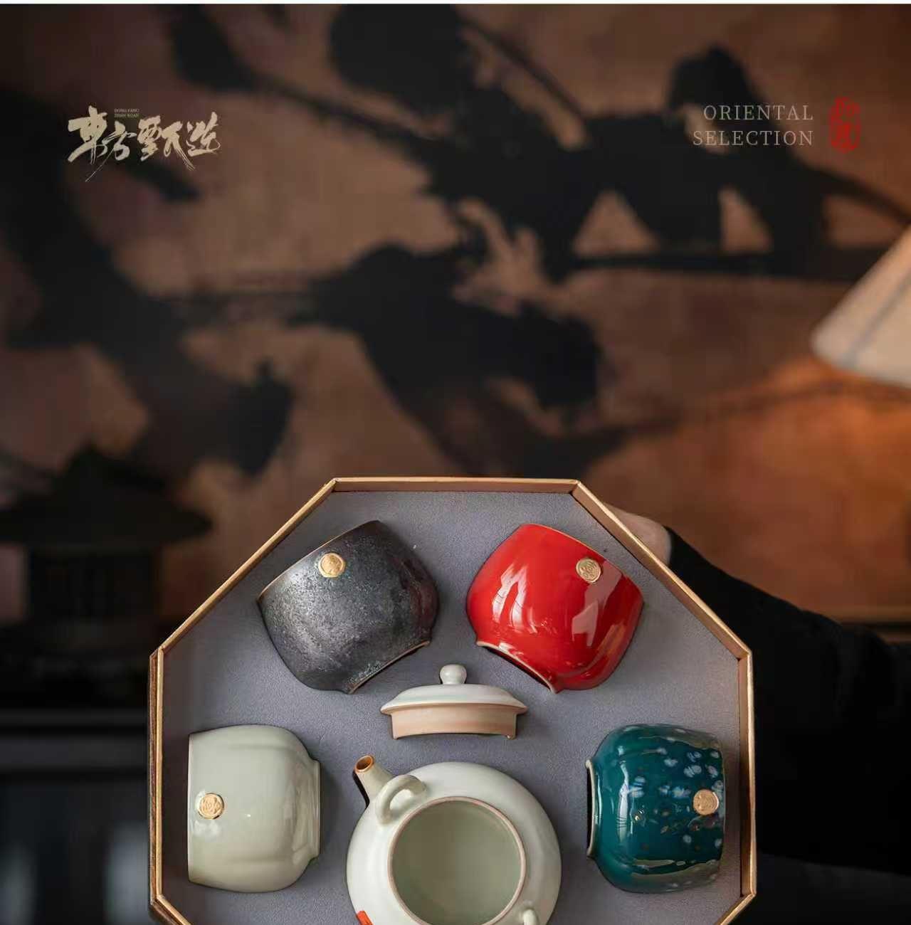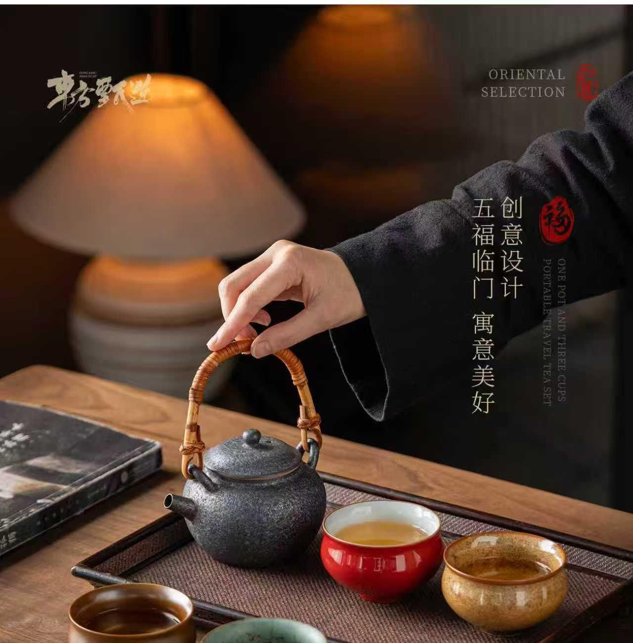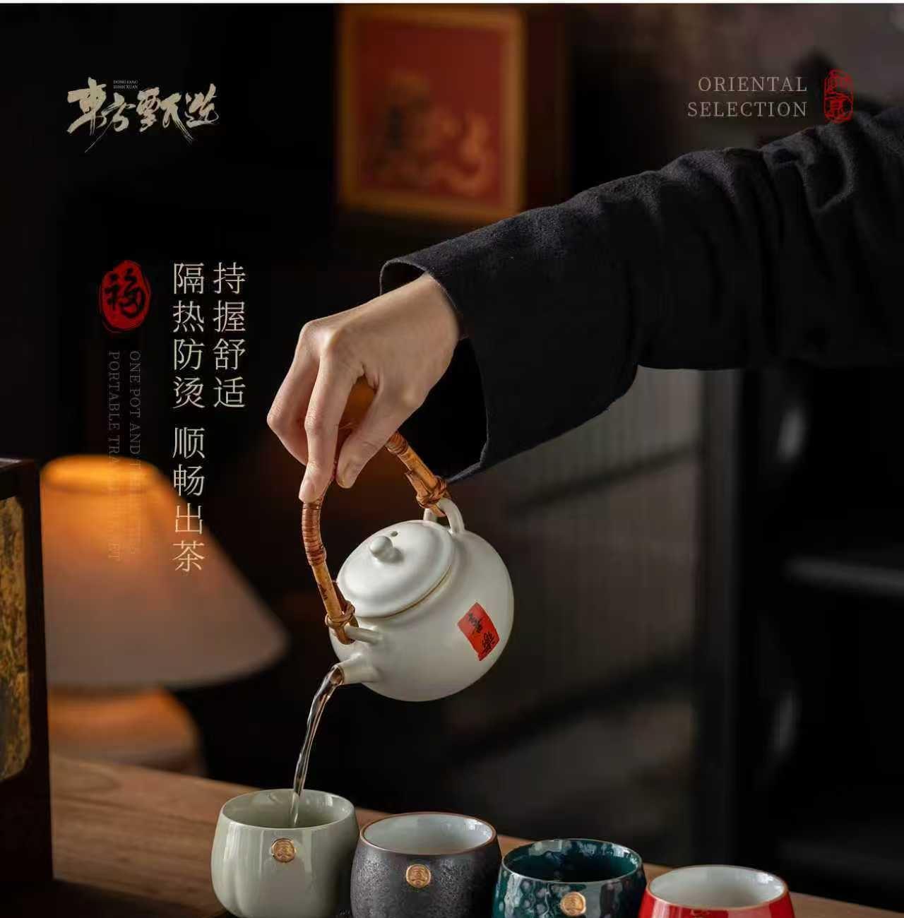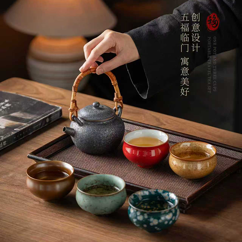 尾桥下窑五福临门四喜提梁陶瓷茶具套装新年伴手礼年会节日纪念品