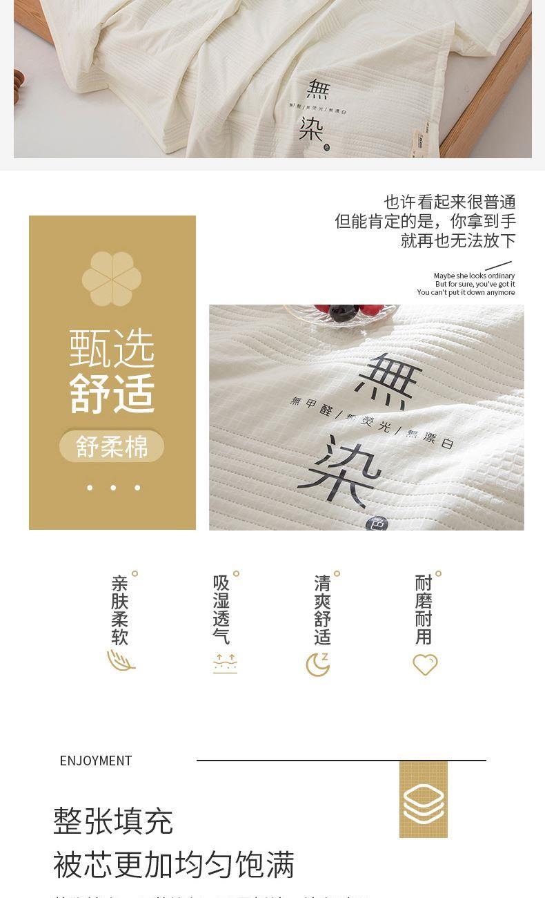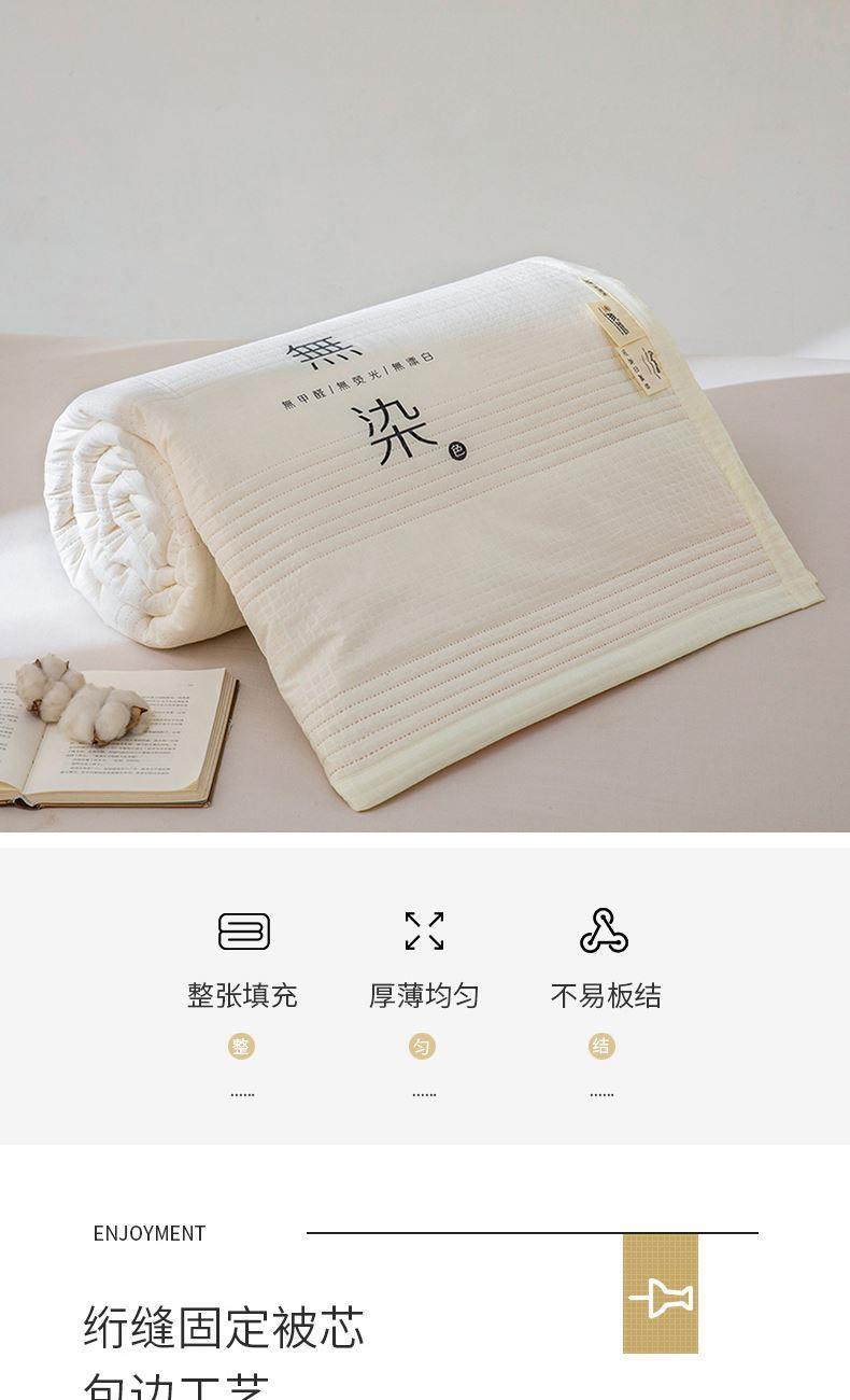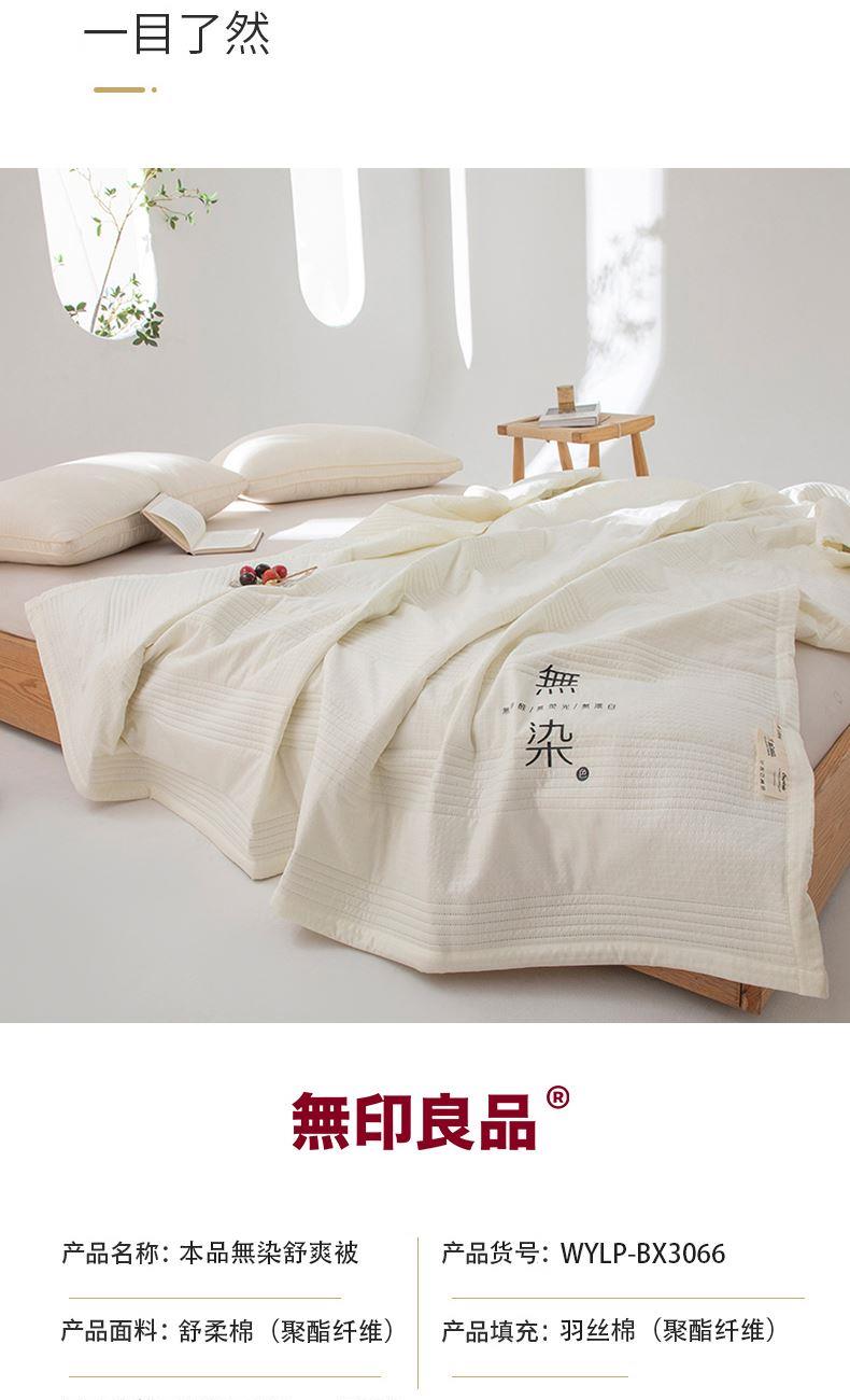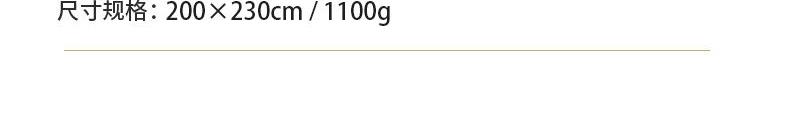 规 格:200×230cm 克重:1100g 面 料:舒柔棉(聚酯纤维) 填 充:羽丝棉(聚酯纤维) “無印良品”大染无印,优良品质的产品是年轻人喜欢的,“無印”设计, 优雅 , 质朴 , 自然 , 是無印良品的初心与追求。让体验更舒适。享受简约健康生活,走进無印,上善若水,大爱无疆,创新让生活更精彩。