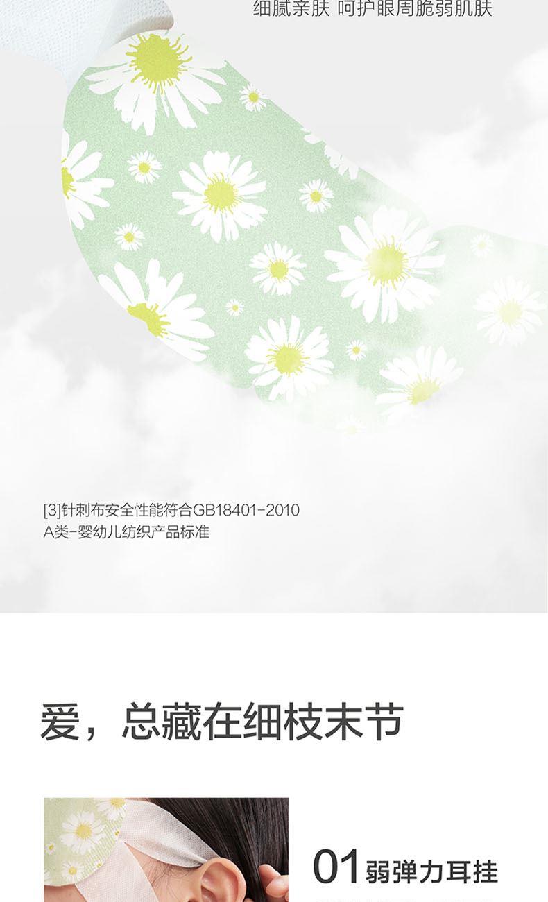 规格:1片/袋 10袋/盒 香型:无香 保质质:3年 1.可感绵密蒸汽,释放眼部压力。 2.持续20分钟以上有效控温,稳定升温不灼热,营养层添加SOD超氧化物歧化酶、透明质酸等营养物质,温润眼周肌肤。 3.添加天然萃取精油,多种香型可选,重构你的睡眠想象。 4.小云朵棉质面料、弱弹力耳挂、贴合工艺设计,呵护眼周脆弱肌肤,静享舒适体验。