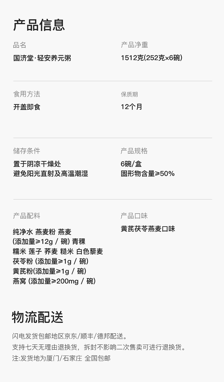 国济堂.轻安养元粥(6碗装252g*6)