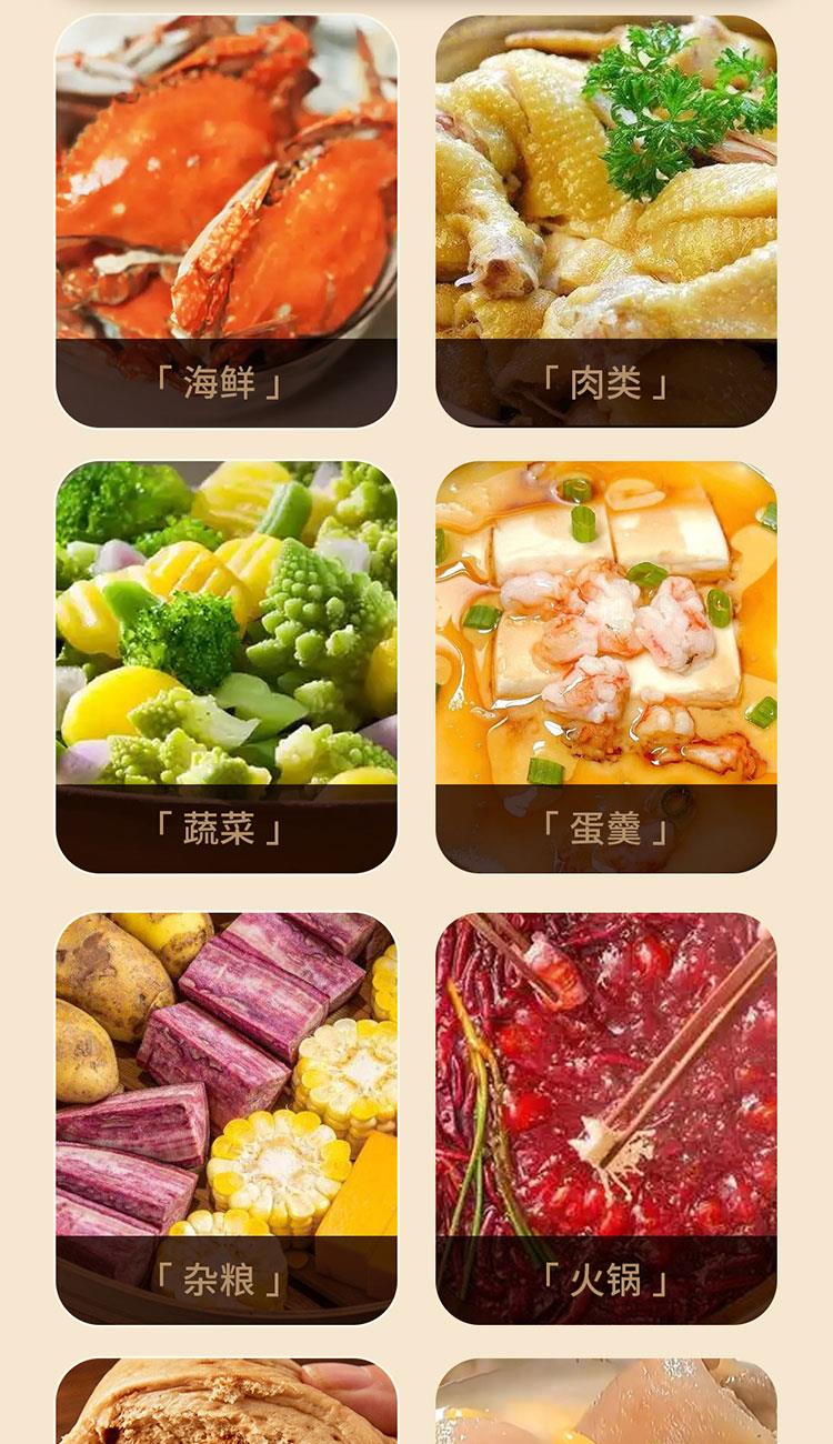 产品规格: 额定电压:220V~50Hz 额定功率:1200W 额定容量:11L 锅胆材质:陶瓷釉 蒸盖蒸笼:PC 操作方式:触控操作 产品特点: 上蒸下煮多用途,一次料理多种美味; 多种组合随心换,花样蒸煮不设限; 1200W大功率,快速出蒸汽,锁住水份和营养; 清晰大屏,操作简单,一键烹饪; 24小时智能预约,鲜嫩美味时刻待命; 精选食品级材质,烹饪无异味。