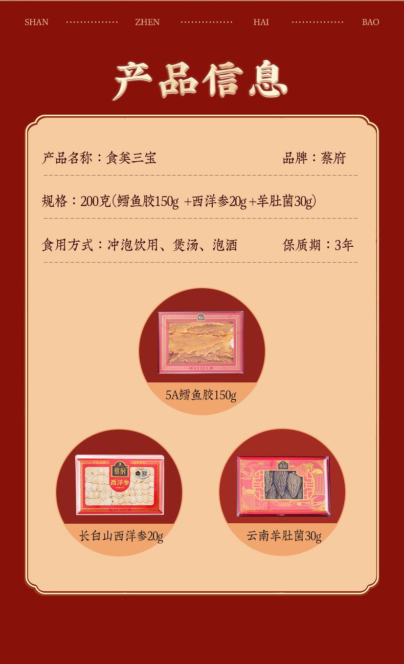 蔡府食美三宝礼盒200g(鳕鱼胶+西洋参+羊肚菌)