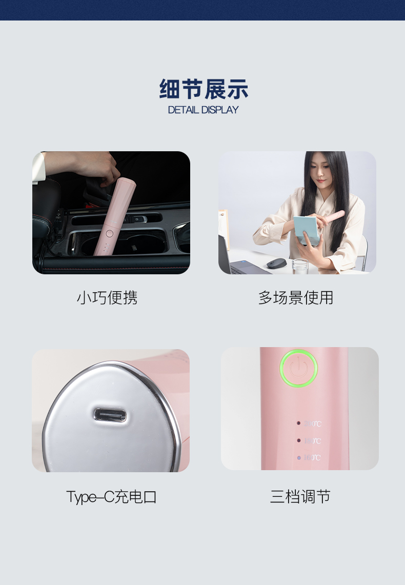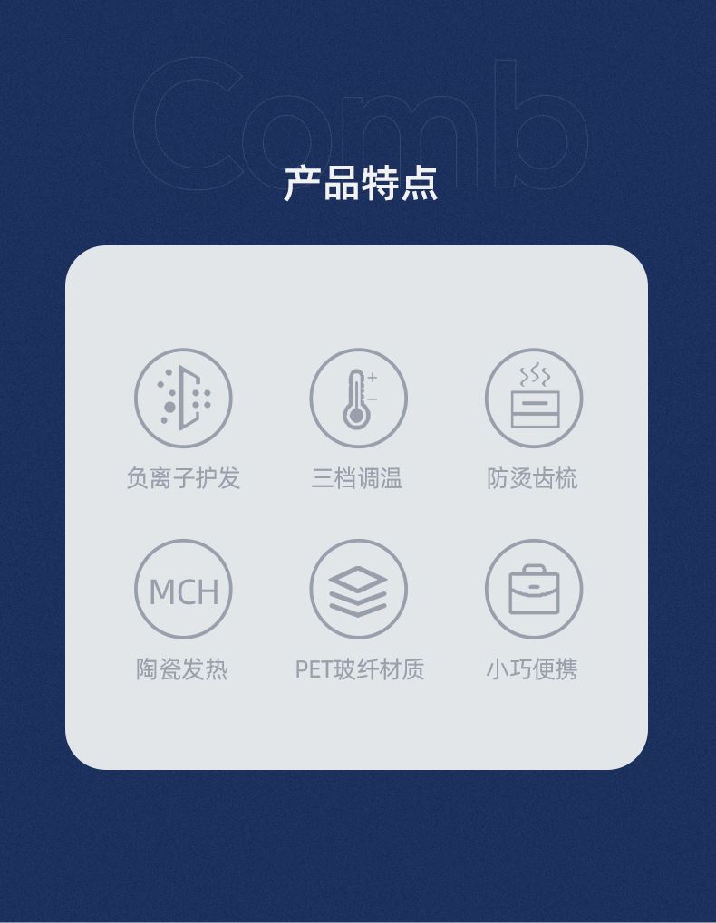 4、 3D立体梳齿,发热稳定,防烫齿梳,不伤头皮不烫手