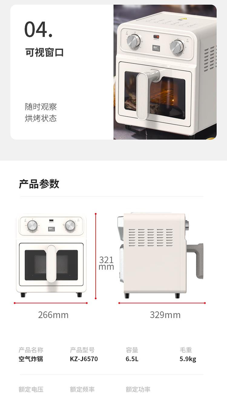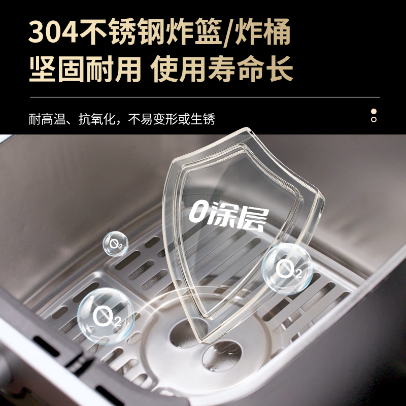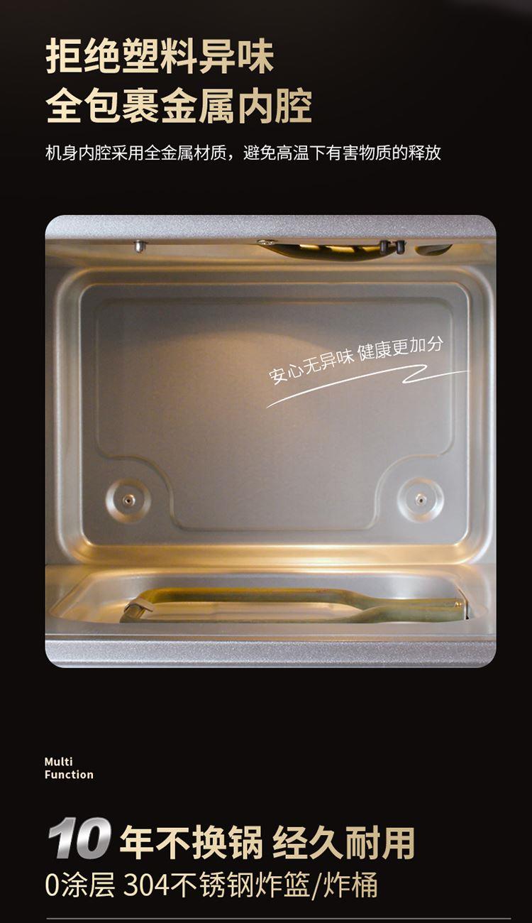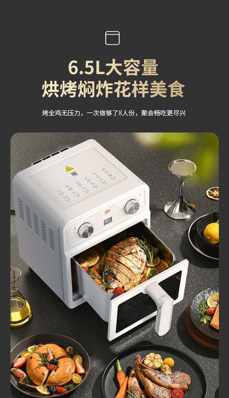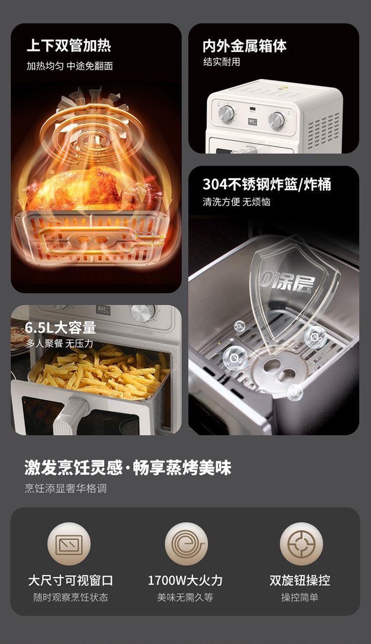 内外金属箱体结实耐用304不锈钢炸篮 6.5L大容量多人聚餐无压力 大尺寸可视窗口观察烹饪状态 双旋钮定时控温一旋一扭操控便捷 0涂层空气炸锅耐磨更耐用清洗方便经久耐用