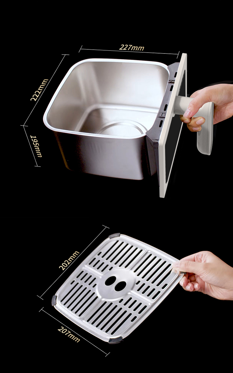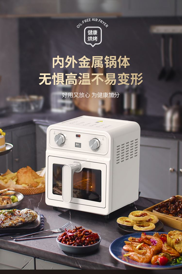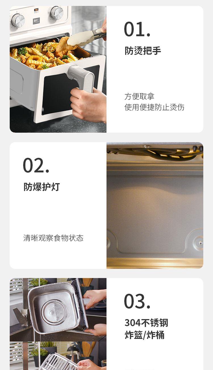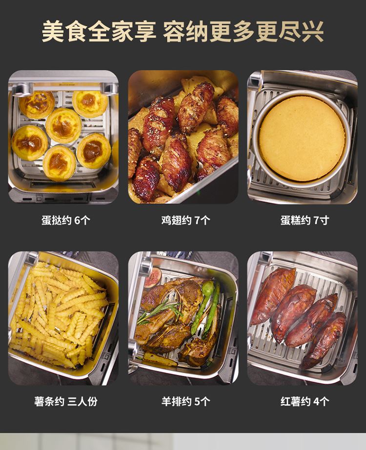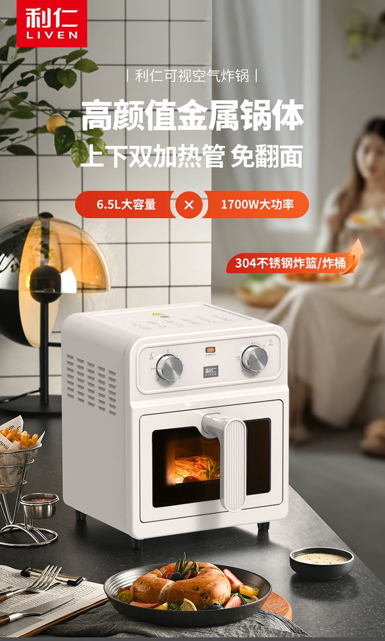 内外金属箱体结实耐用304不锈钢炸篮 6.5L大容量多人聚餐无压力 大尺寸可视窗口观察烹饪状态 双旋钮定时控温一旋一扭操控便捷 0涂层空气炸锅耐磨更耐用清洗方便经久耐用