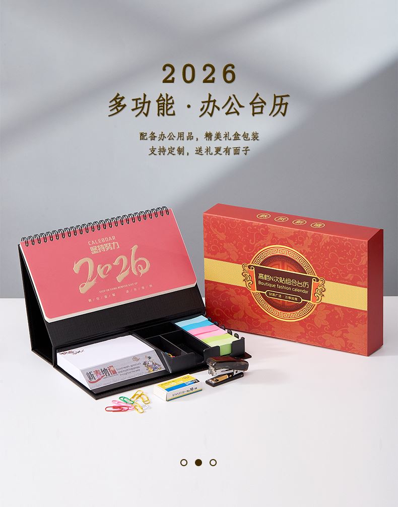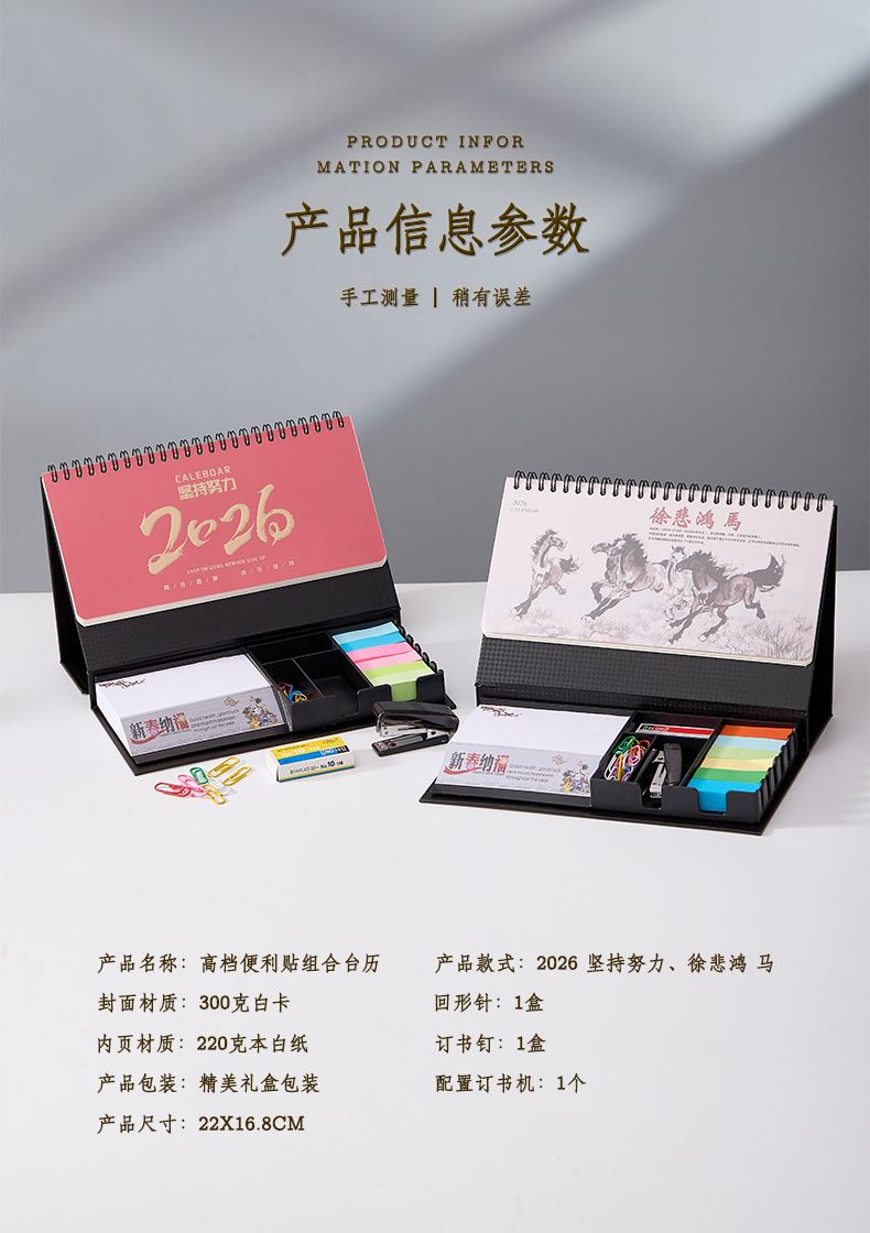 1.注:商城报价对应首张主图款式! 其他套装参考细节图,费用另计! 2. 咨询下单请备注好产品信息! 3.首图款式产品明细:便利贴组合台历(2026坚持努力)