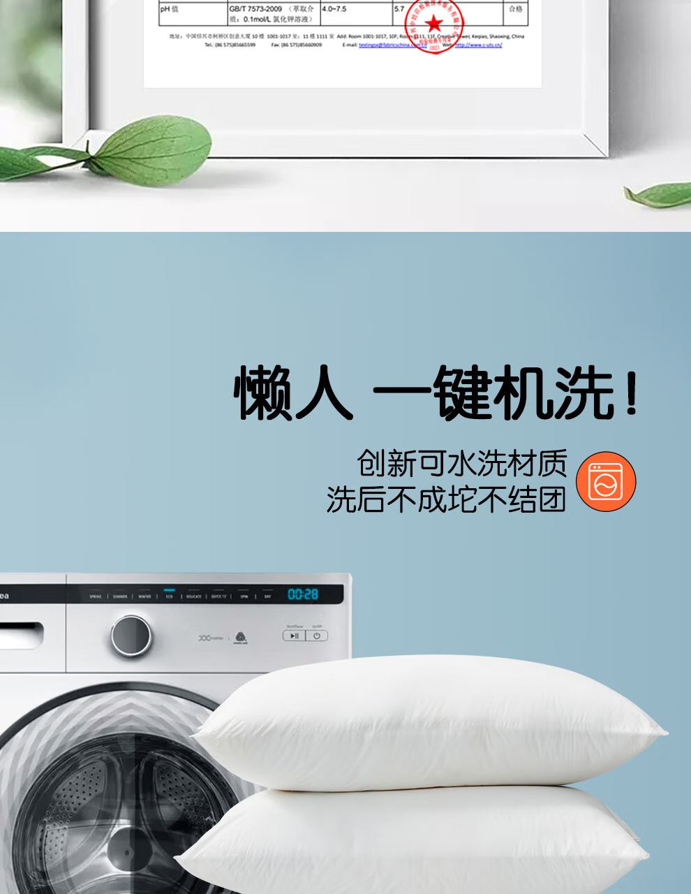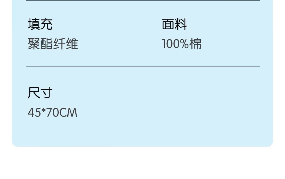 1、柔弹兼备:1:1超细纤维与弹性纤维,柔软与支撑的科学配比,释放头颈压力,久睡不易塌陷 2、亲肤材质:全棉A类面料,60S高密高支,柔软顺滑,富有光泽 3、洁净健康:采用同频共振物理技术,抑制细菌真菌繁殖生长,水洗50次仍有效果 4、一键机洗:创新可水洗材质,洗后不成坨不结团 面料:全棉 填充:聚酯纤维 包装方式:环保简装 规格尺寸:45*70*18cm