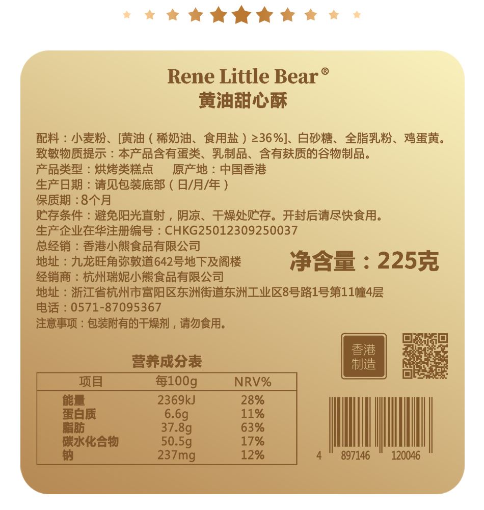 【顺丰包邮】香港小熊黄油甜心酥225g