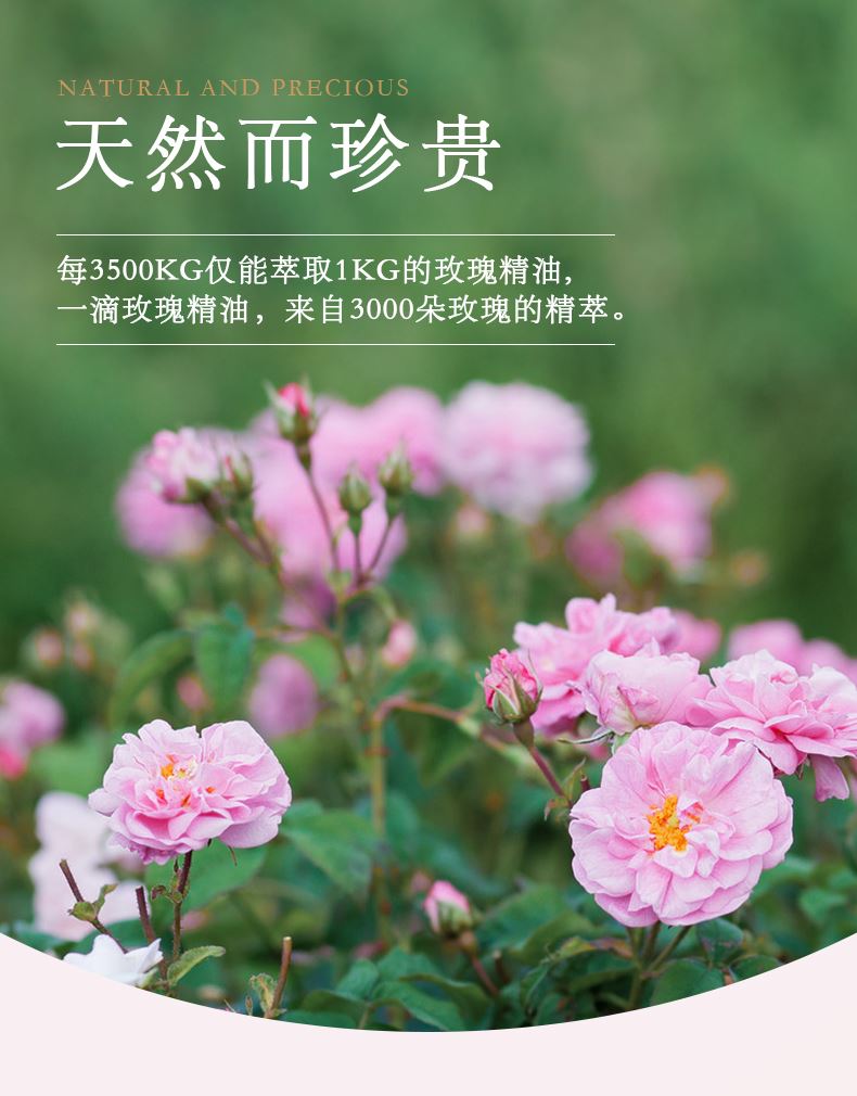 添加珍贵的女神之花保加利亚玫瑰油、植物油皇后橄榄油和多种维生素。 温和细致,保湿滋养,促进更新,提高肌肤活力。