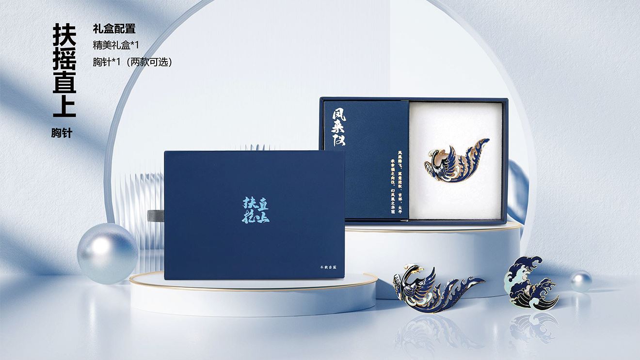 精美礼盒*1 胸针*1(凤来仪、涌起两款可选) 凤来仪: 尺寸:60*38mm 材质:18K金电镀表面处理,珐琅滴油工艺 涌起: 尺寸:33*42mm 材质:18K金电镀表面处理,珐琅滴油工艺