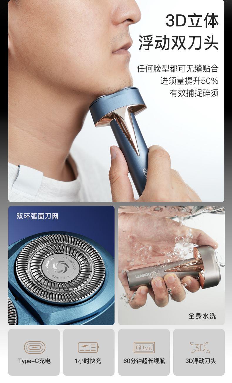 1.全身水洗,磁吸刀盖,潮玩有趣 拆卸方便 2. 双环弧面刀网,剃须更顺滑 3.1小时快充,60分钟超长放电时间 4.环保恒压锂电池,Type-c 充电 5.3D浮动刀头,智能防夹须 6.自动研磨刀片,切剃更锋利,7000转/分钟高速电机 动力更强劲 7.礼盒包装+精美绒布收纳袋