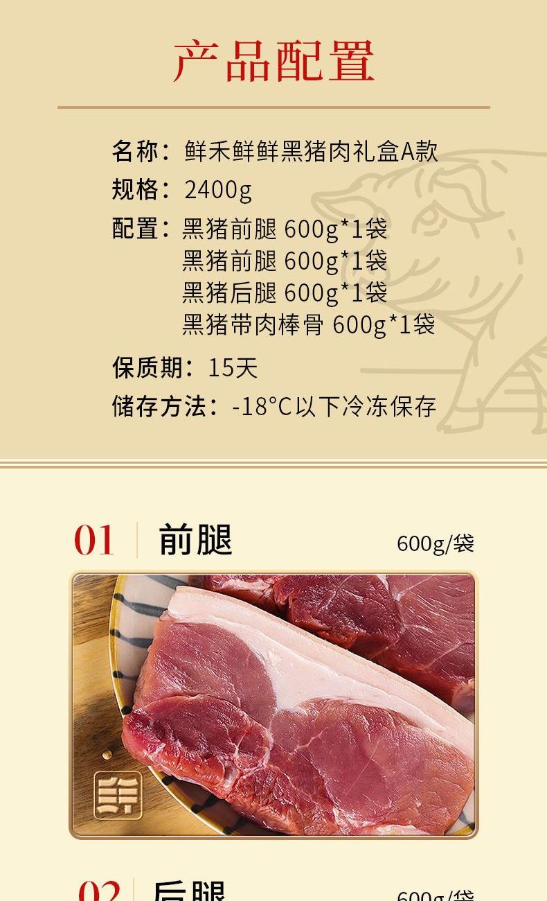 鲜禾鲜冰鲜黑猪肉礼盒A款2400g