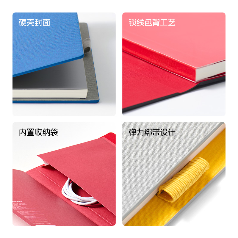 1、硬壳布艺封面设计,手感细腻,随手书写也稳如垫板。