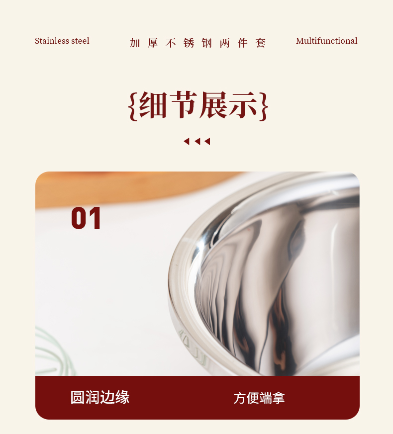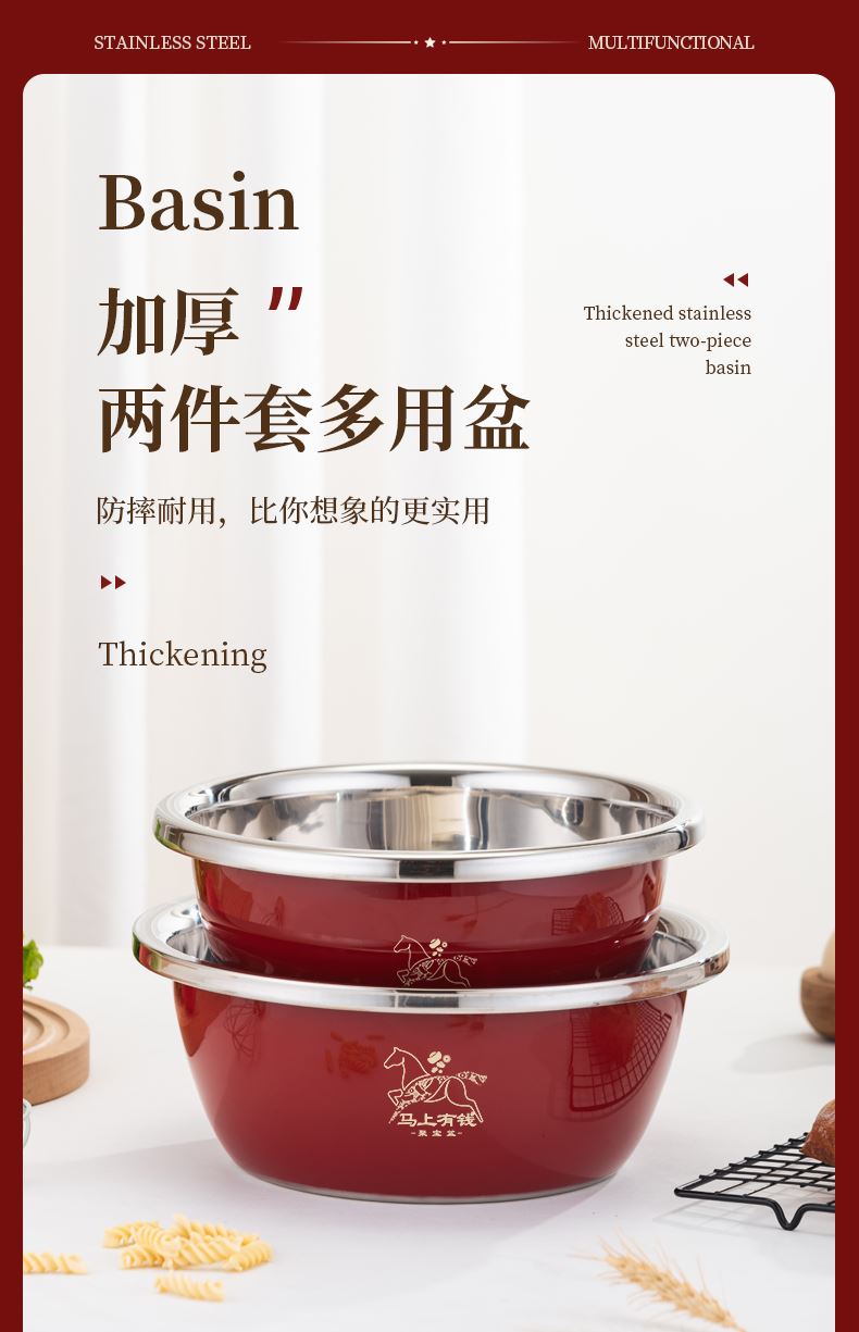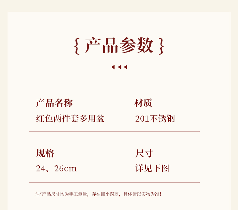 产品规格 : 24-26cm 产品材质 : 201不锈钢 包装方式 : opp透明袋+手提彩盒 彩盒尺寸:26.7cm * 11.7cm * 26.7cm 聚宝盆,顾名思义就是装满金银财宝,取之不尽用之不完的宝盆。送礼送聚宝盆,美好寓意,广纳八方财富,汇聚四方鸿运。寓意:生活美好,事业兴旺,红红火火,宝盆在手财运相伴。好礼品,是日日用得上,为你的消费者从日常生活入手,低成本高效益,
