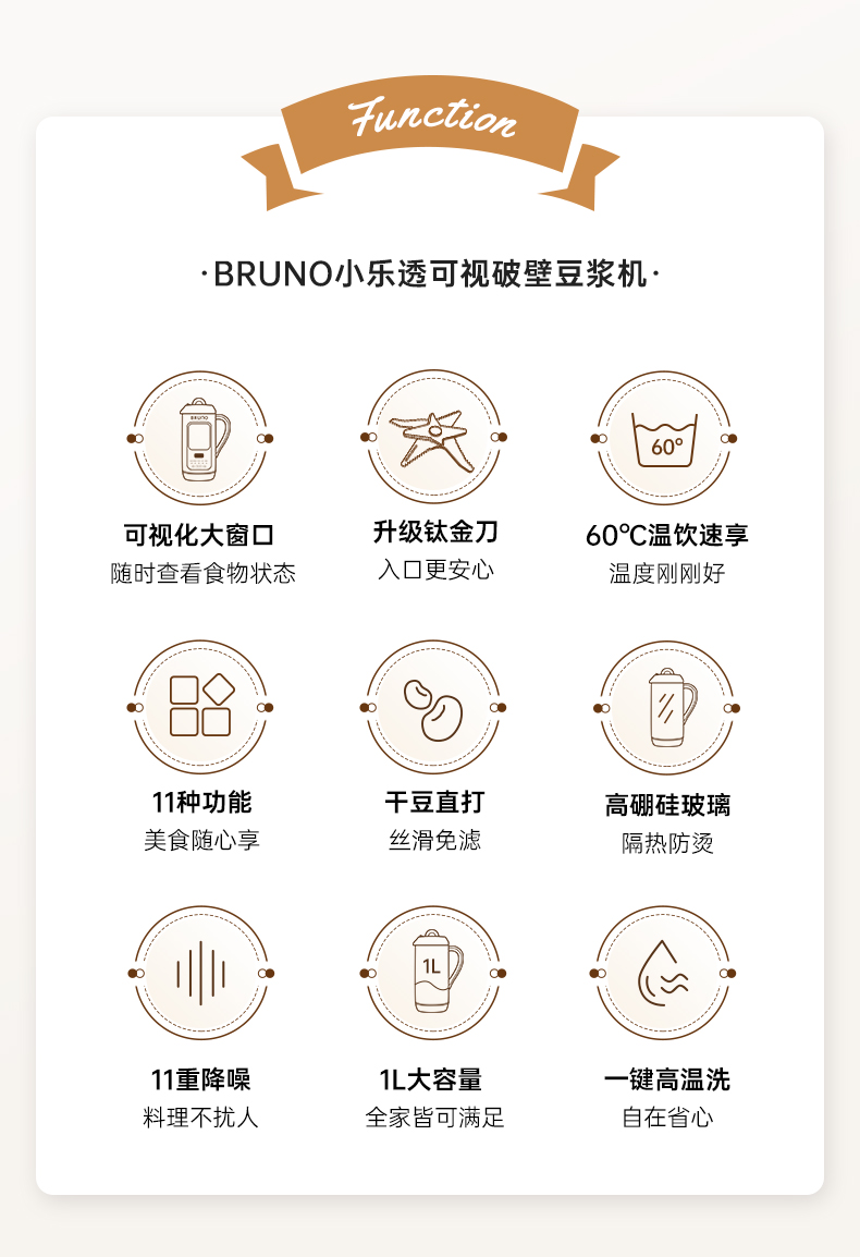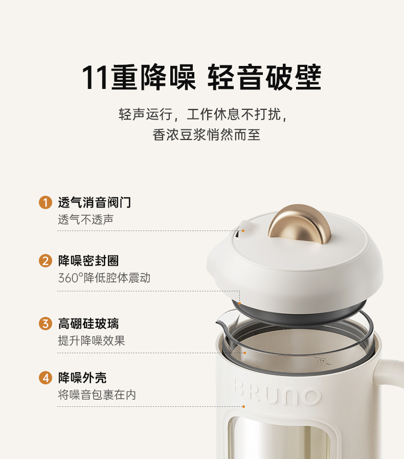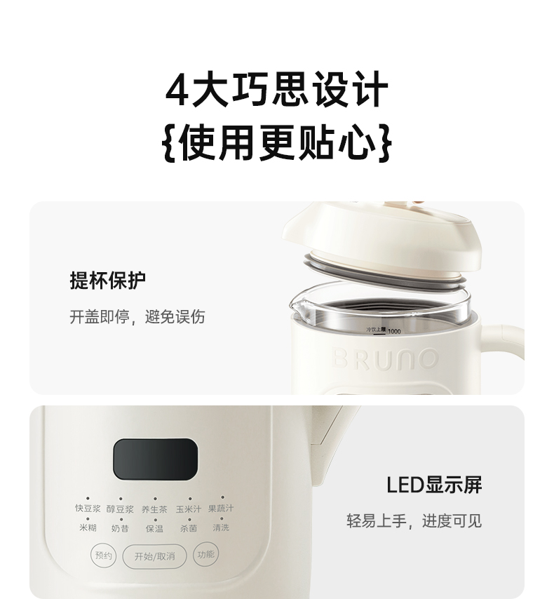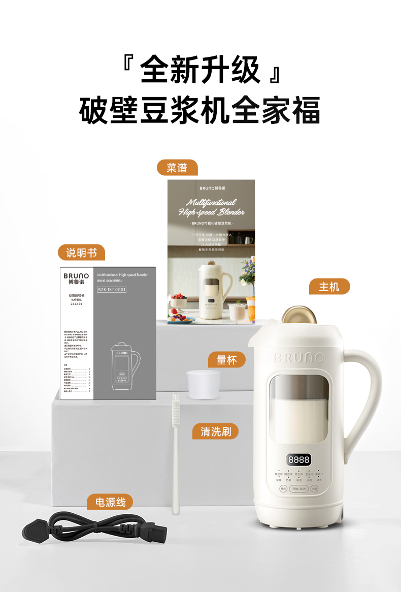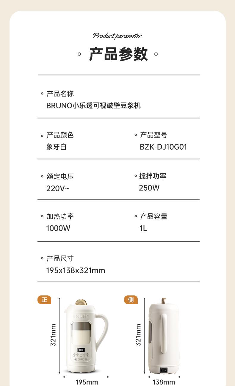 BRUNO钛刀头可视破壁豆浆机BZK-DJ10G01