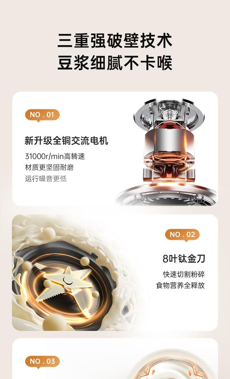 可视化大窗口,查看食物状态 升级钛金刀,强力粉碎健康破壁 双桶中空设计,防烫降噪轻音破壁 19min快豆浆-现磨现喝 一键高温洗-自在省心