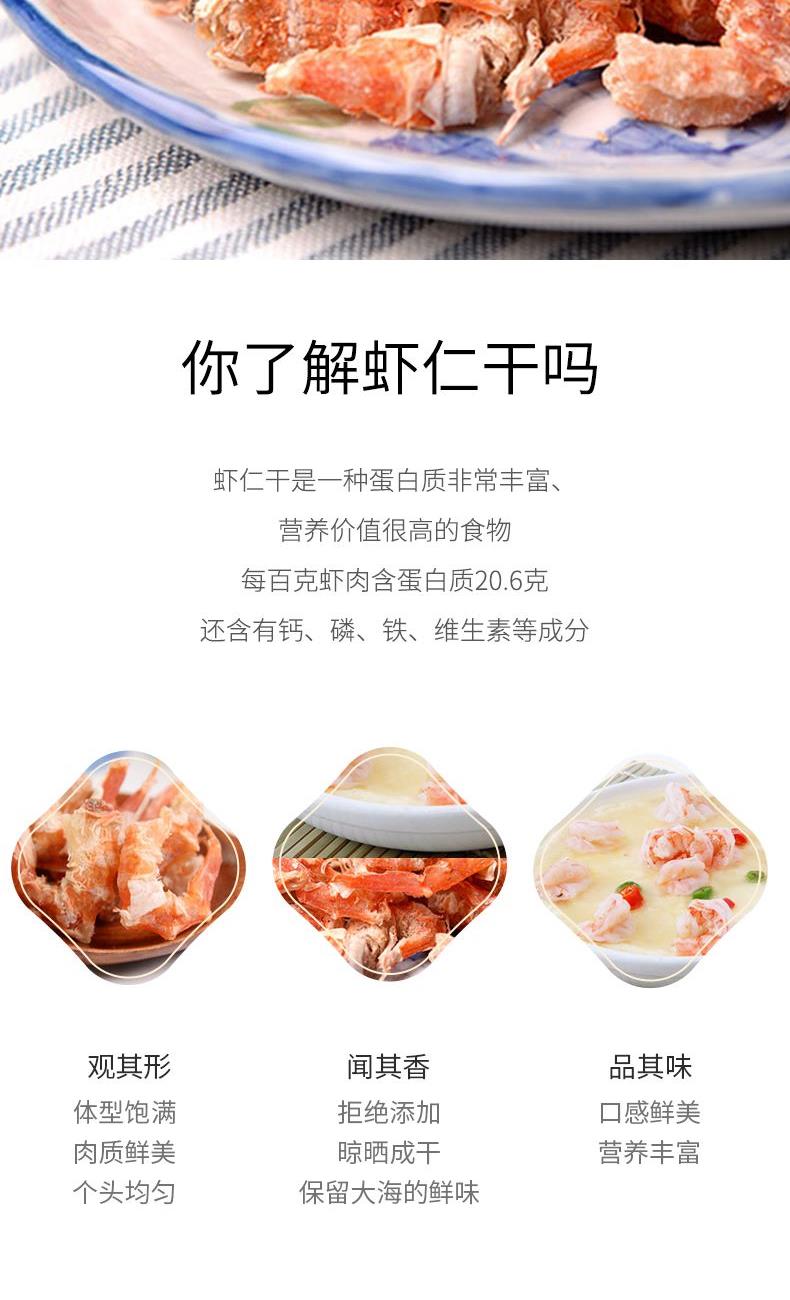 配料:虾仁 原料产地:浙江省瑞安市 净含量:130克 保质期:10个月 生产日期:见包装物打印处 食用方法:用清水浸泡回软洗净后,可炖、煮、蒸等,还可为多种菜肴调出美味。本品选用新鲜大海虾,经挑选、烘干处理而成,肉质细嫩、味道鲜美,可单独做菜或为其它菜肴调出美味。