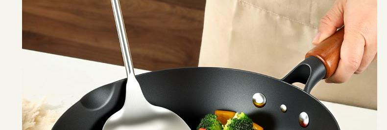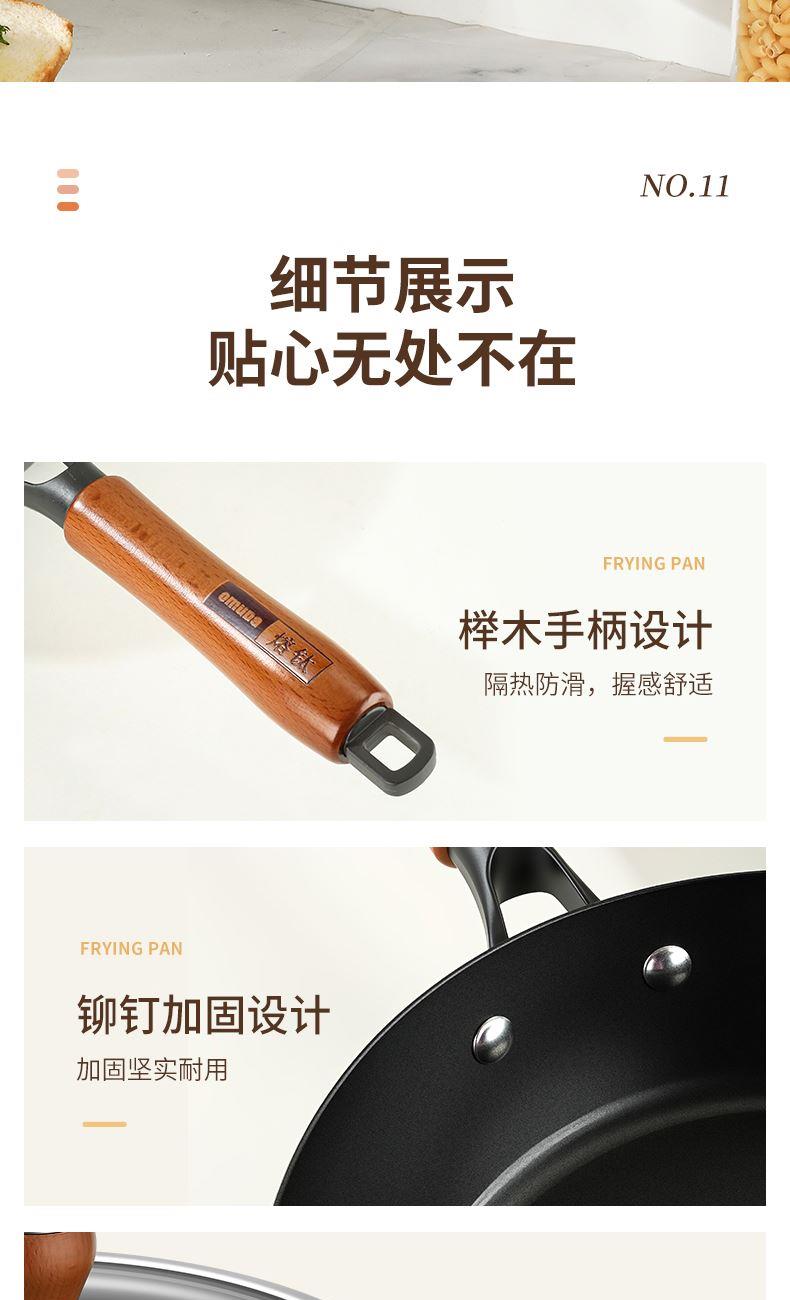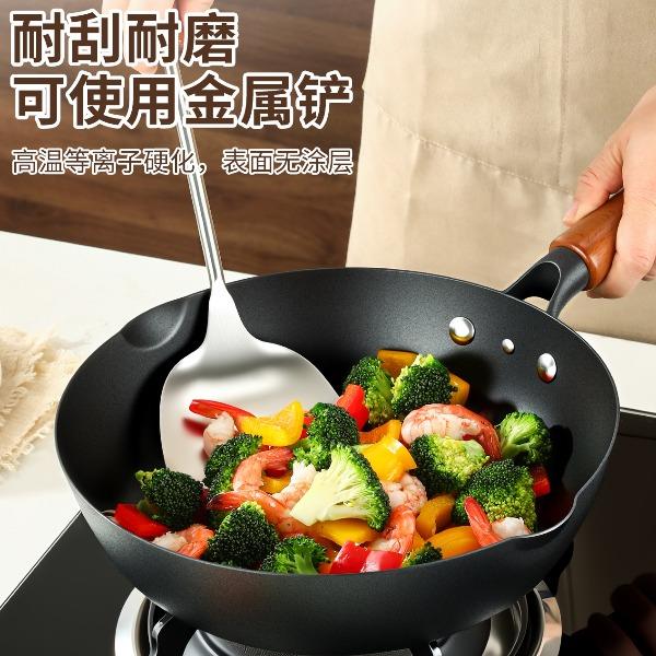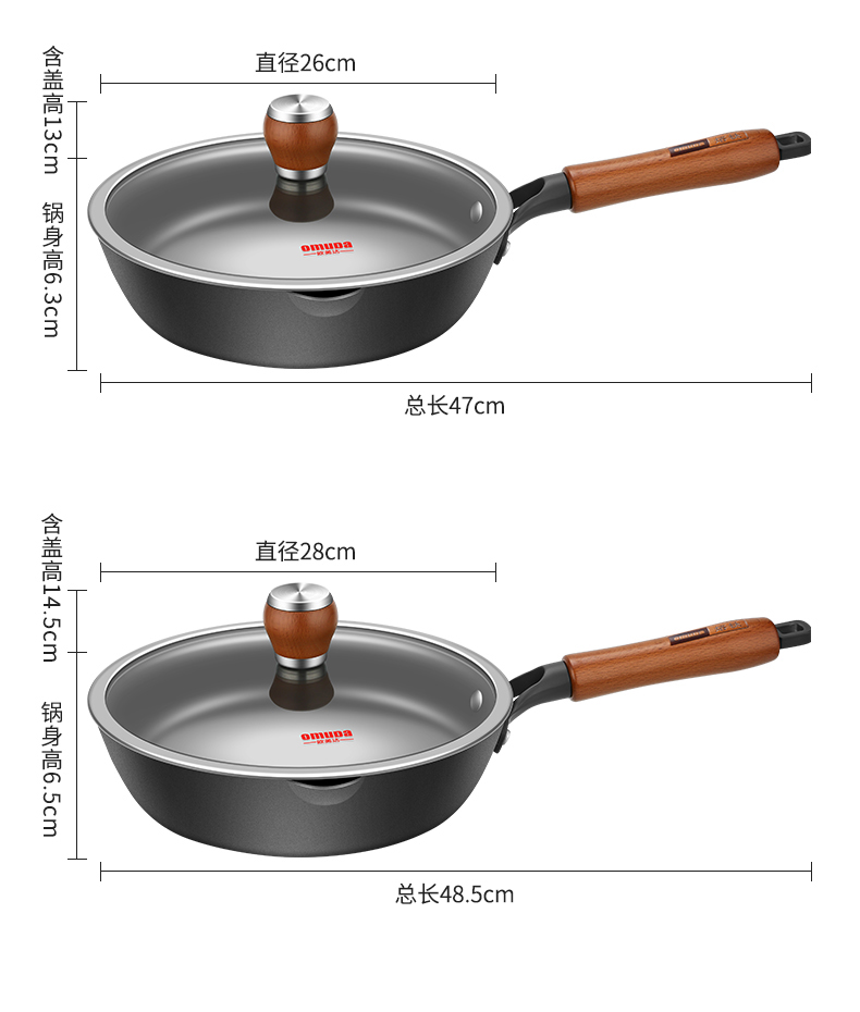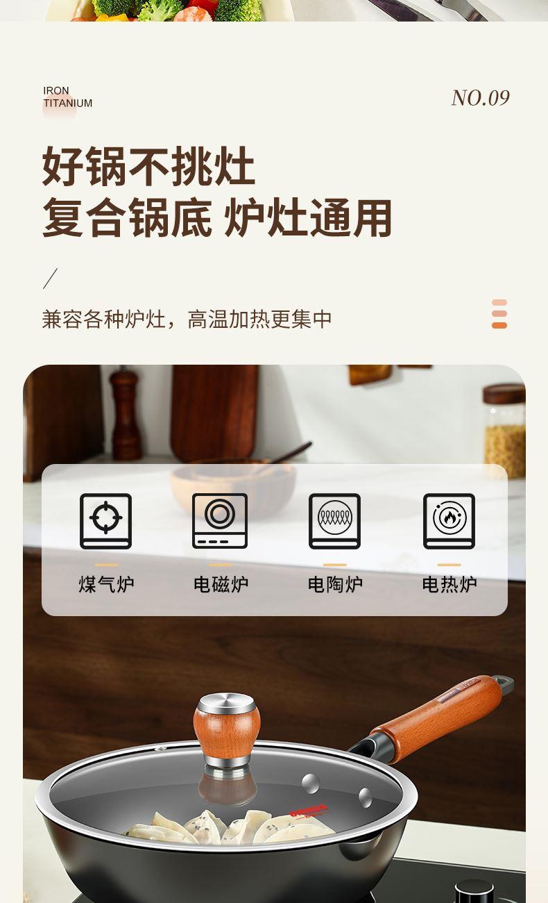直径:26cm 净重:1.56kg 材质:精铁熔钛 ①等离子钛铁不粘科技,打造双重物理不粘 ② 铁钛熔合,材质更健康,10000°C+等离子熔覆微孔不粘 ③ 高温等离子硬化,表面无涂层,耐刮耐磨,可使用金属铲 ④ 锅体旋压工艺,底厚壁薄,有效提升密度的同时,不粘性能更优 ⑤轻量锅身设计,轻松掂锅 ⑥榉木手柄设计,隔热防滑,握感舒适
