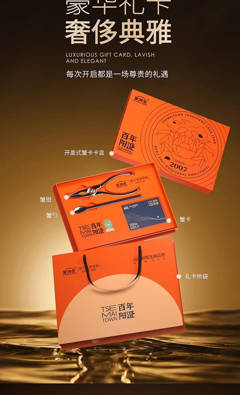 【礼卡】蟹满堂阳澄湖大闸蟹2888型 公4.5两母3.5两 5对10只(张) 阳澄湖原产地 足斤足两 正宗阳澄湖大闸蟹