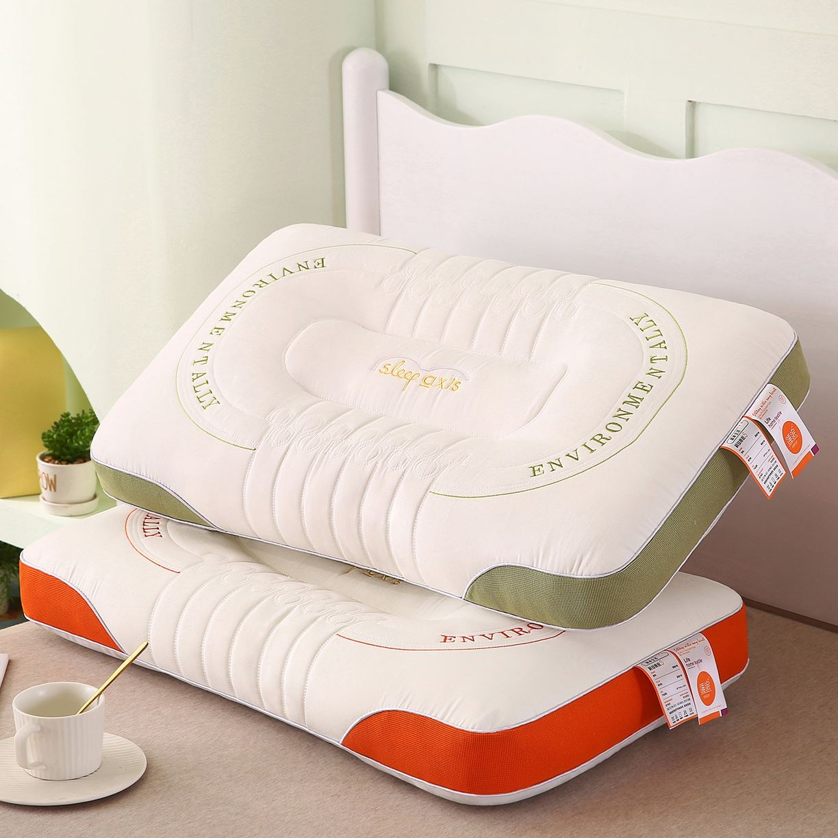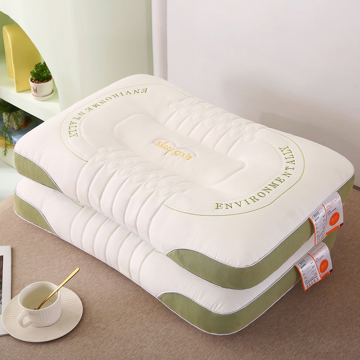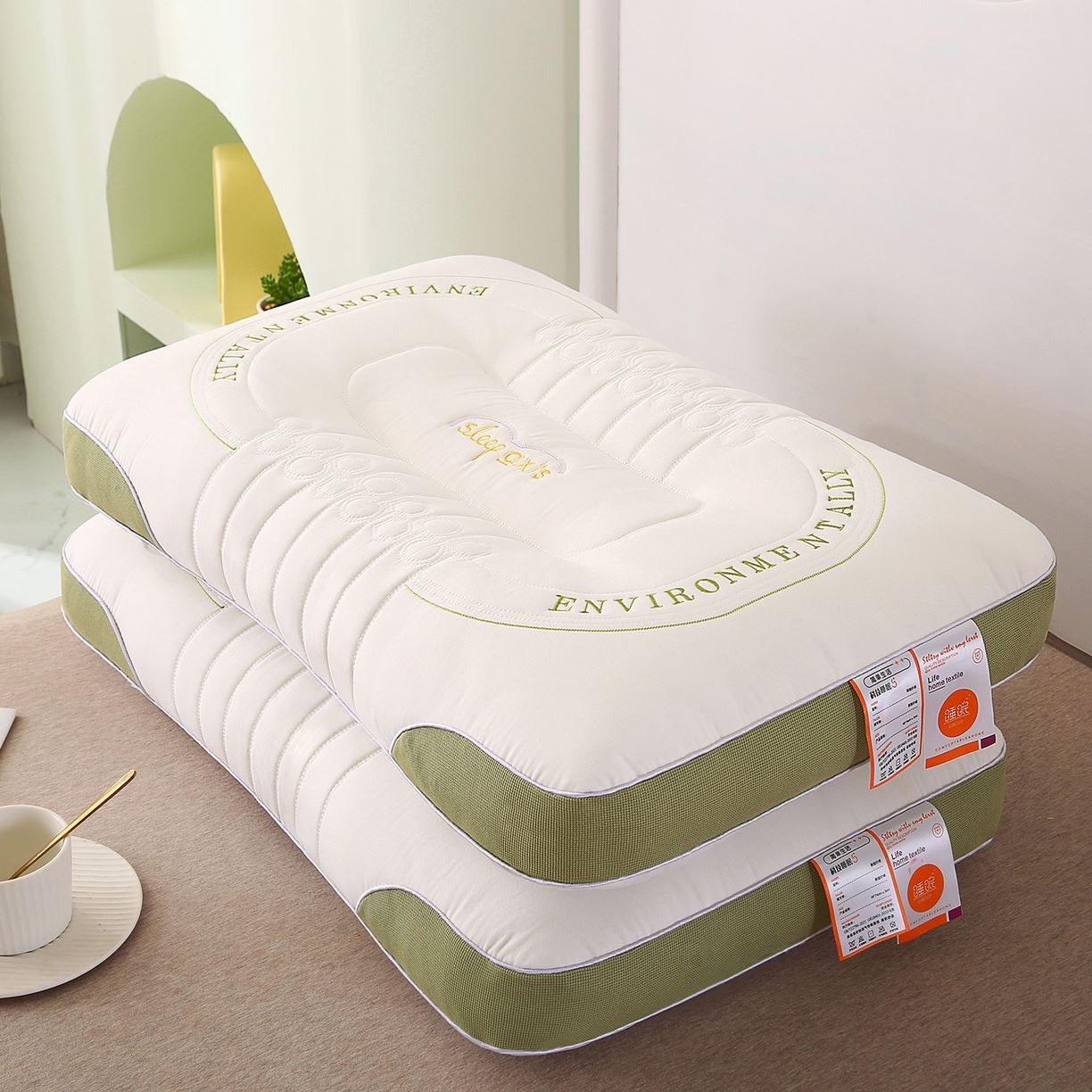 甄选牛奶针织棉,手感细腻,亲肤透气,立体感较好。 高弹性纤维填充,快速回弹,不易坍塌。 四周精美包边工艺,简约有格调。 枕套:牛奶针织棉 枕芯:高弹羽丝棉
