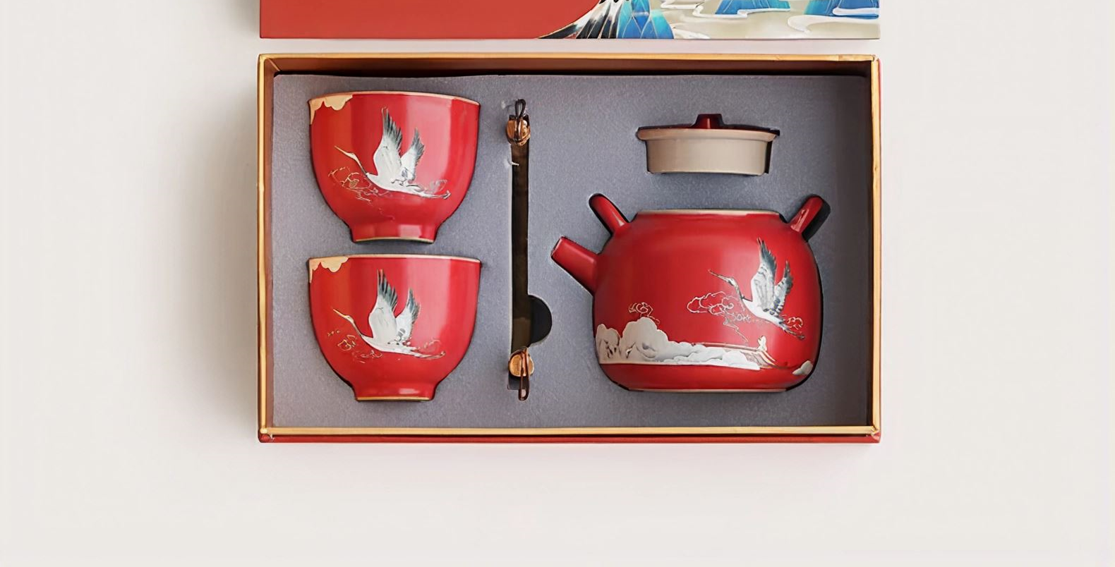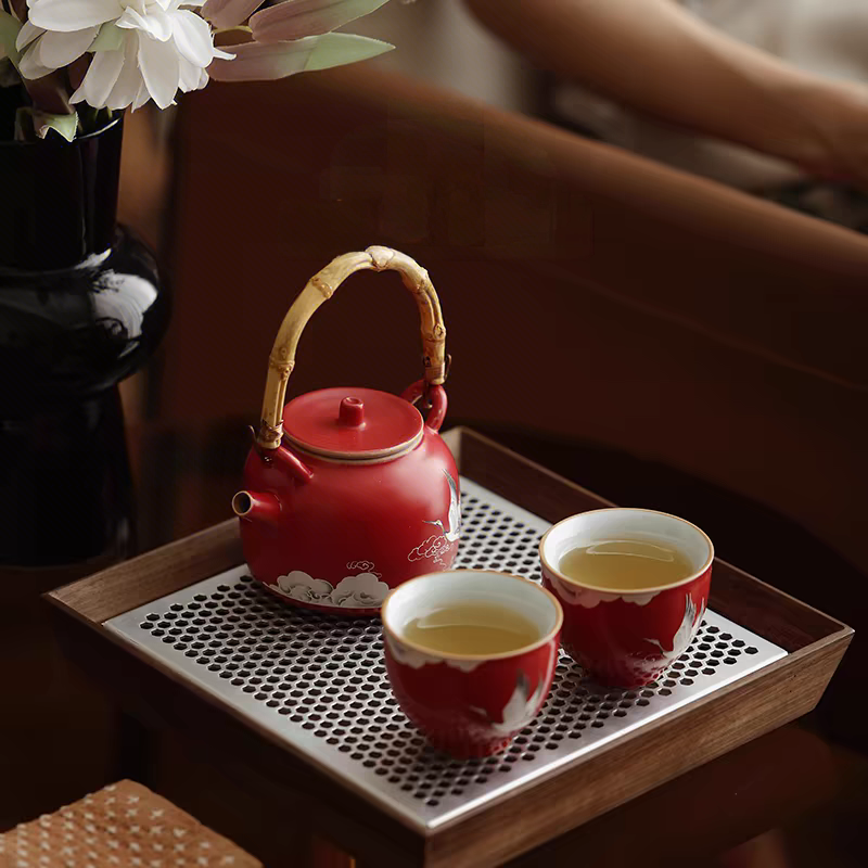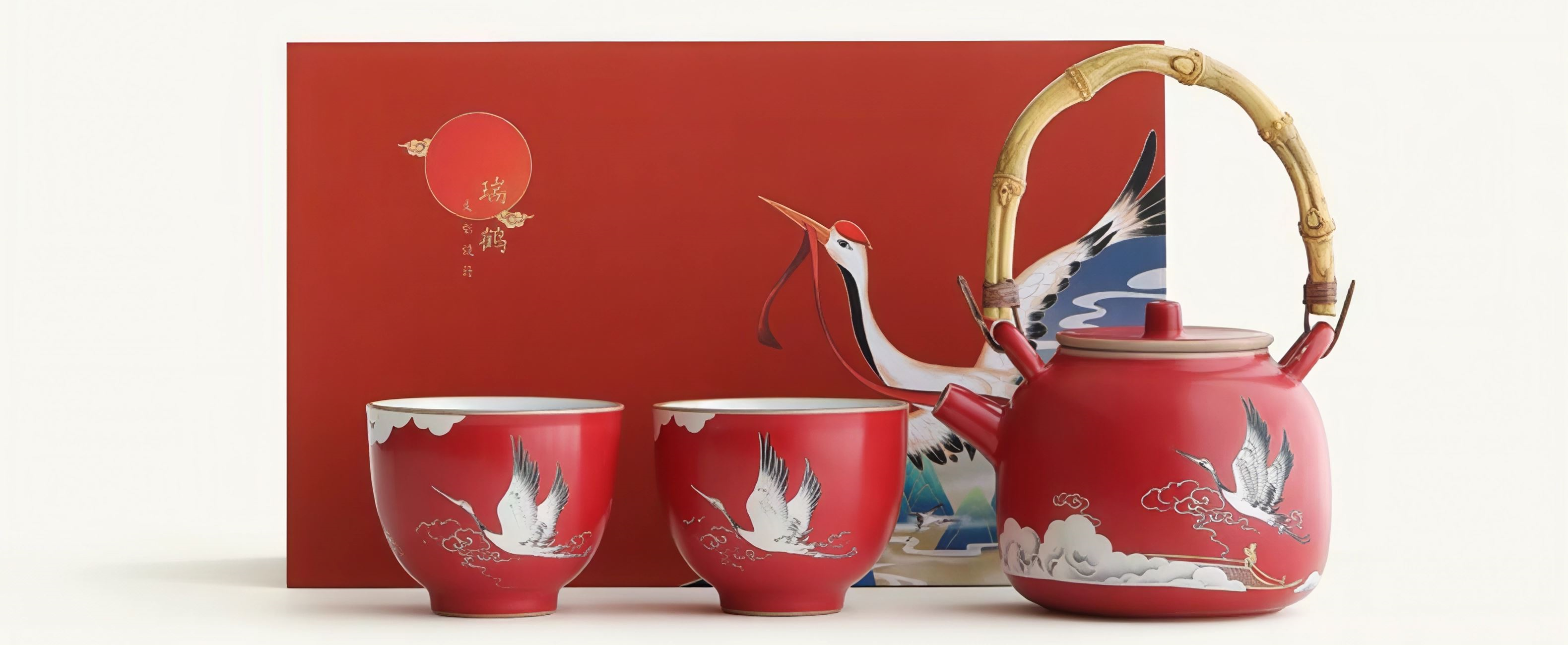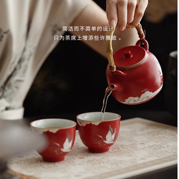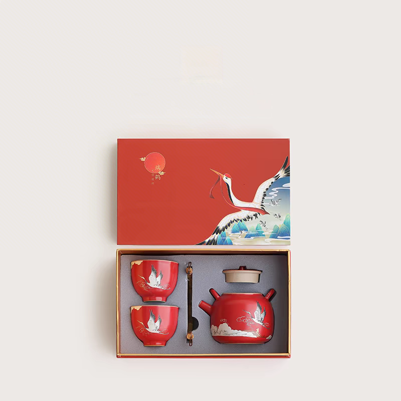 尾桥下窑故宫文创瑞鹤呈祥提梁壶茶具小套装开门红会议商务礼品