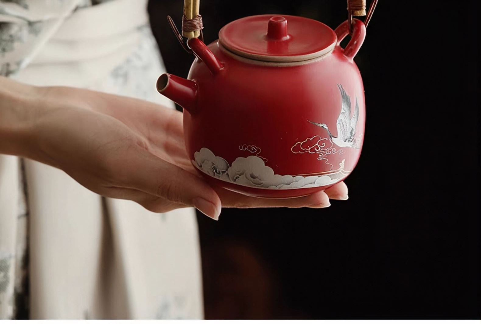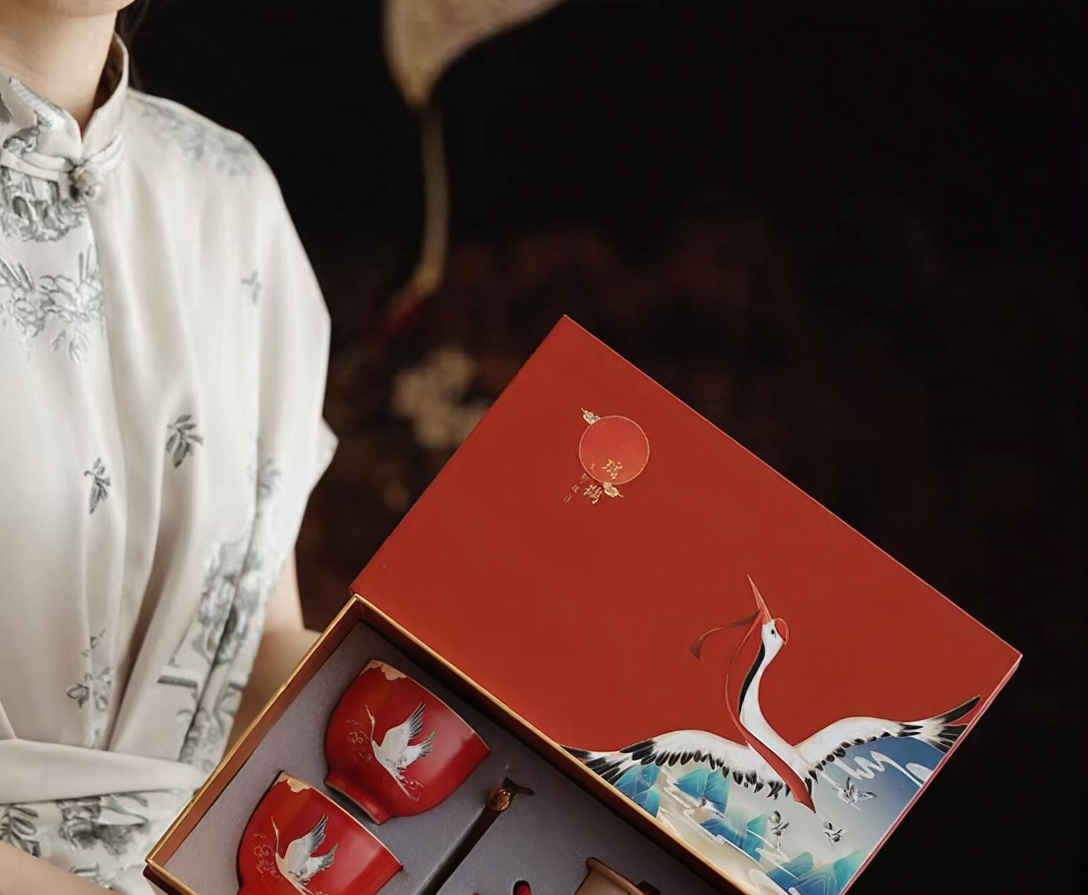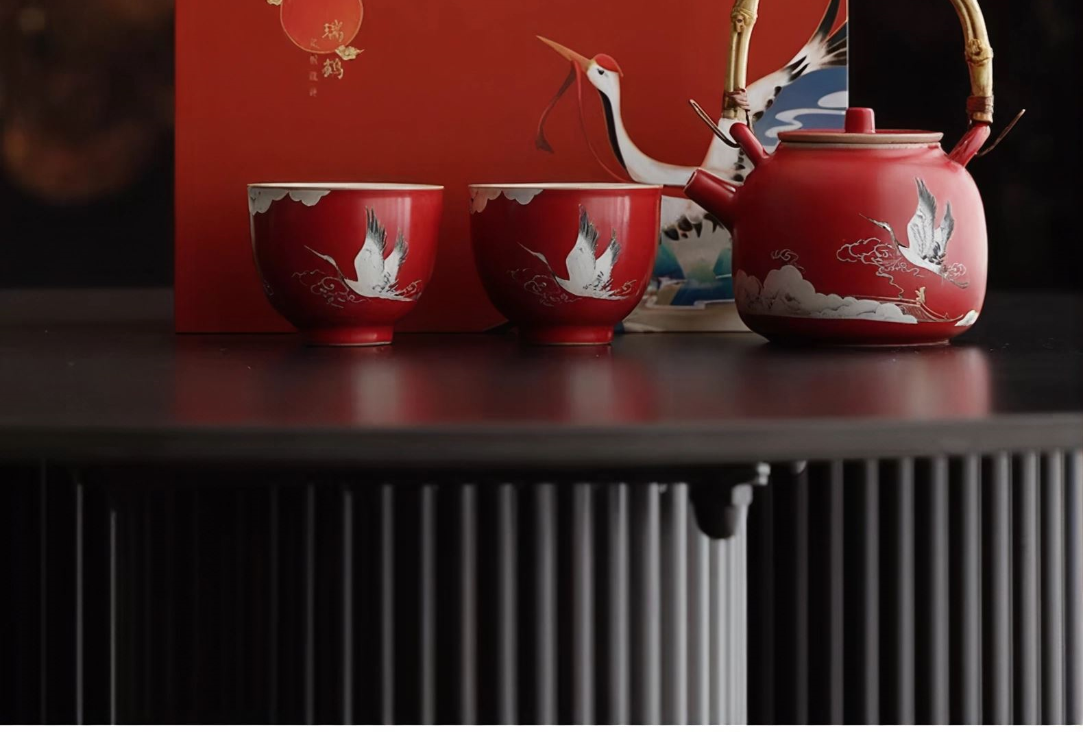 尾桥下窑故宫文创瑞鹤呈祥提梁壶茶具小套装开门红会议商务礼品