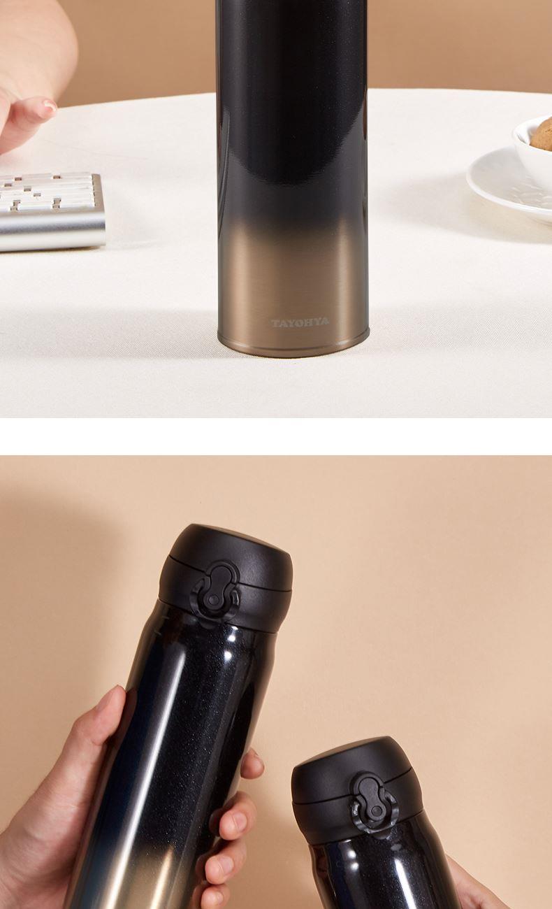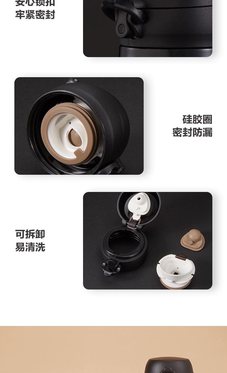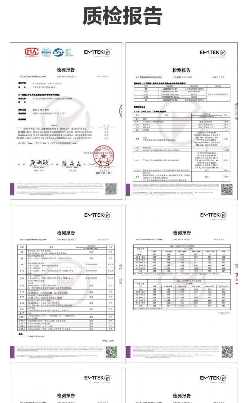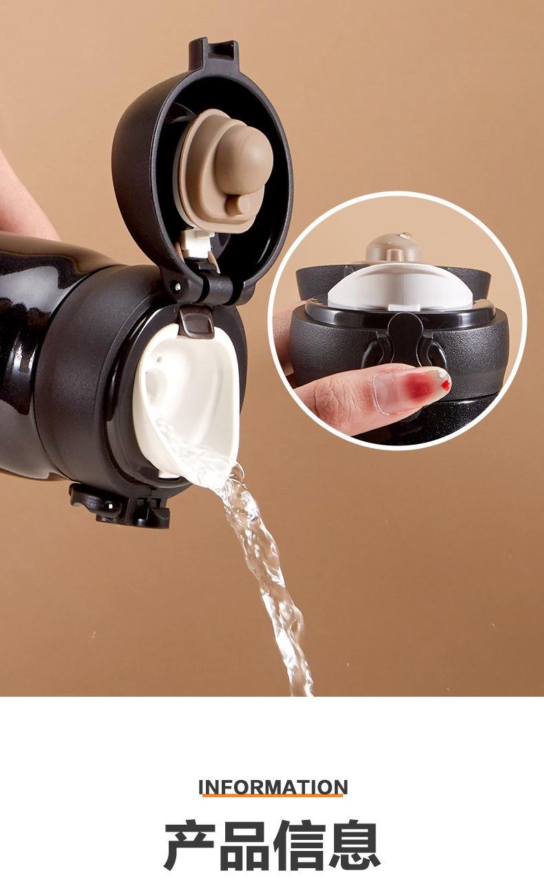 材质:外层304不锈钢,内层316不锈钢 规格:500ml,208g 特点:316不锈钢内胆,耐腐蚀性更佳,饮用更安心;双层抽真空锁温,温度继续;超轻便携;安心锁扣加硅胶圈,密封不滴漏;一键弹盖,防烫饮口。