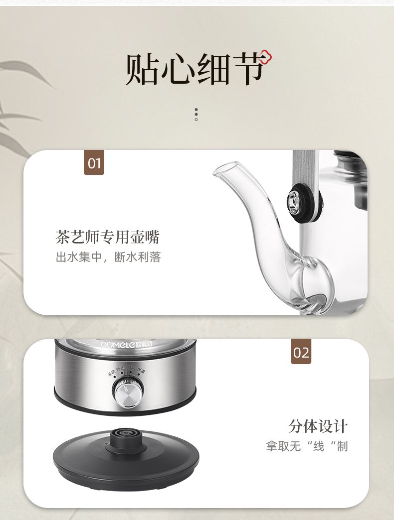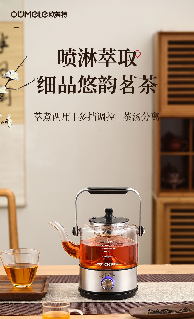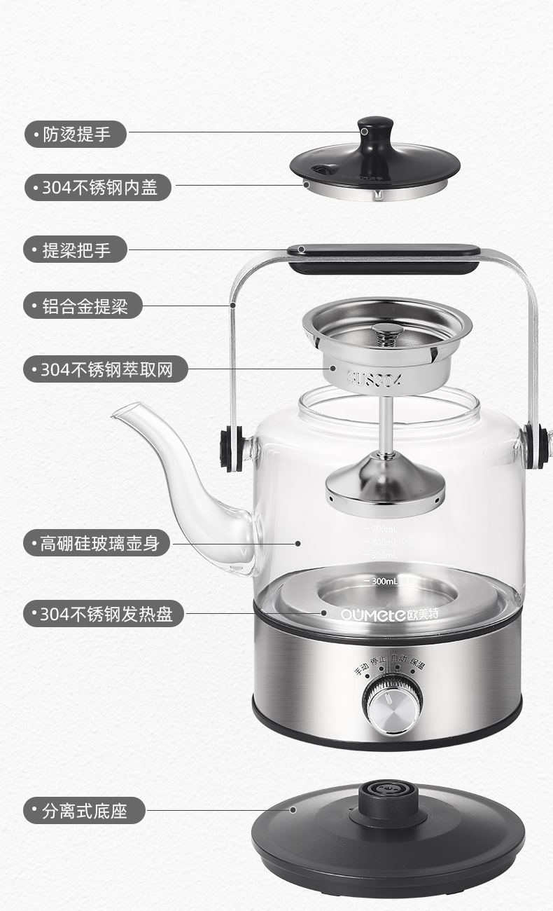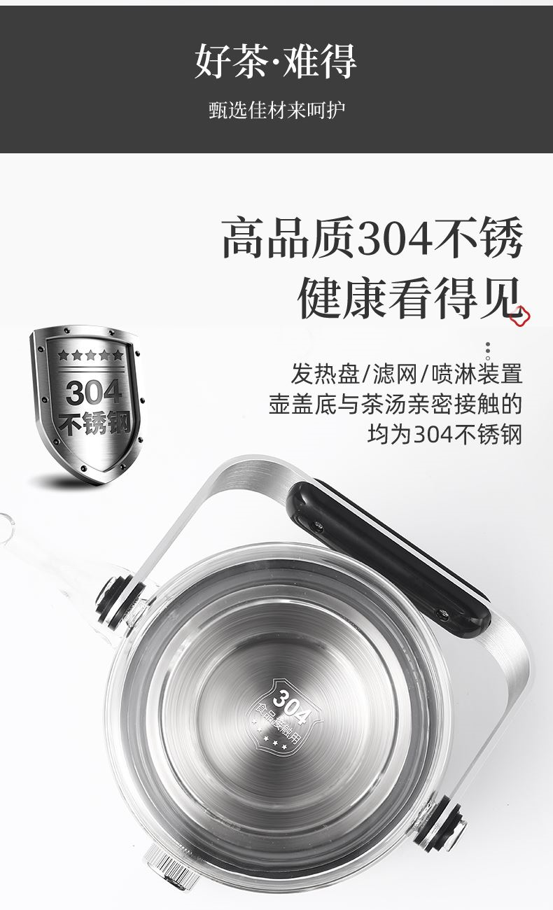 1、全新升级分体式过滤网--声音更小,更易清洗,煮茶口感好
