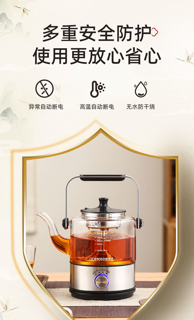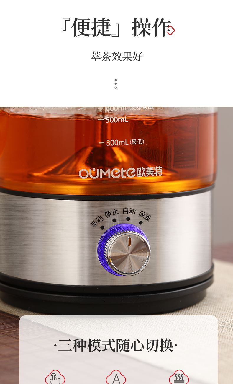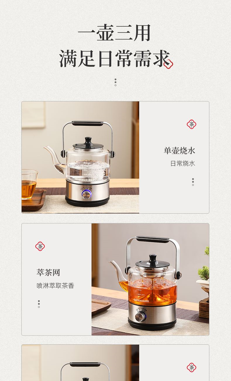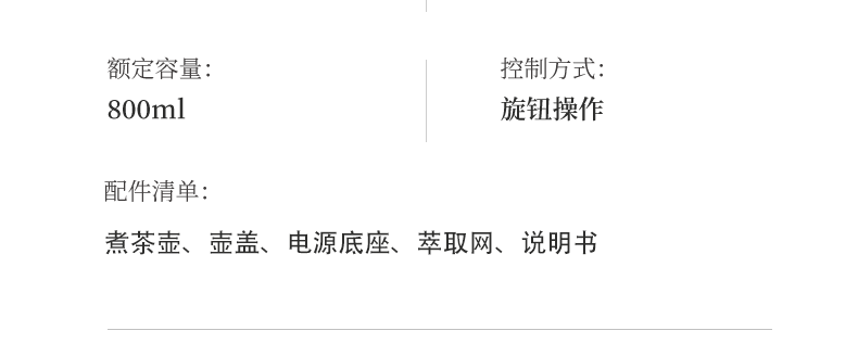 功能:自动煮茶、手动煮茶、恒温暖茶