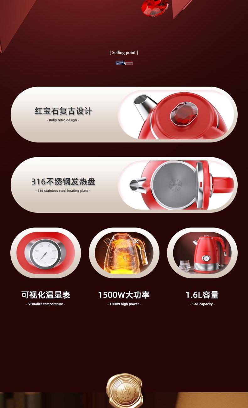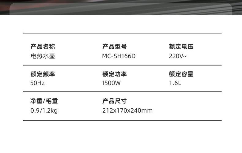 美国迈卡罗电热水壶MC-SH166D