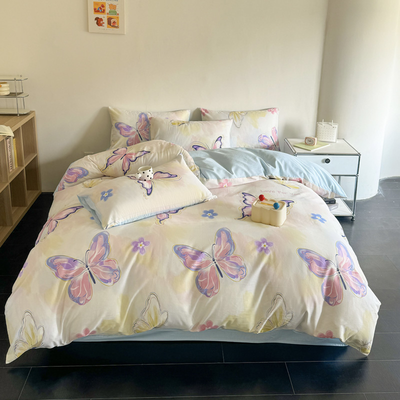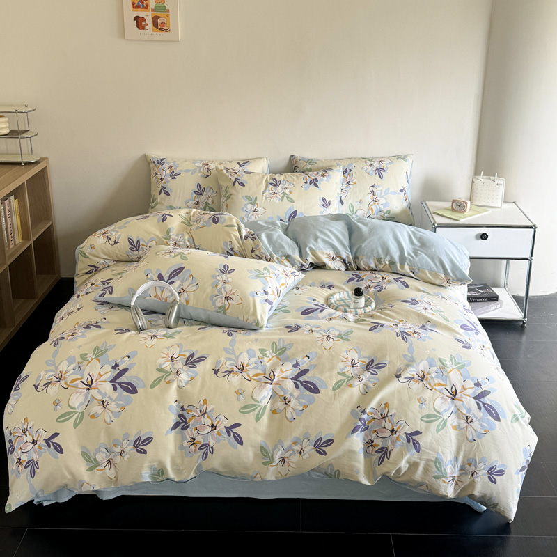 1:高支高密面料透气性高 柔软舒适 日照充足,纤维柔韧,肉眼可见的高品质面料无纱结,质感比一般的新疆纯棉舒适面料 2:每一次接触都能感受到自然的呼吸仿佛被云朵包裹住身体,帖服保暖,远离闷热感 3:AB 面均采用不同设计,时尚不失格调适合多种家居风格,随心所欲 尺寸:被套200*230cm*1 床单:230*245cm*1 被套:48*74cm*2 包装:礼盒
