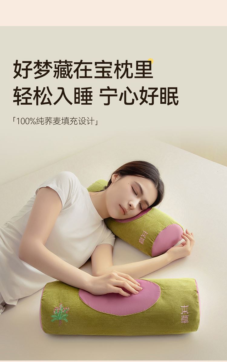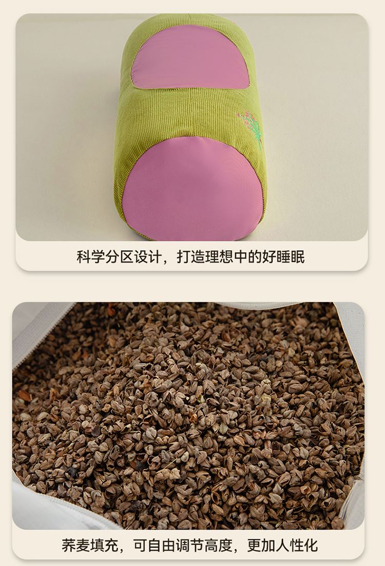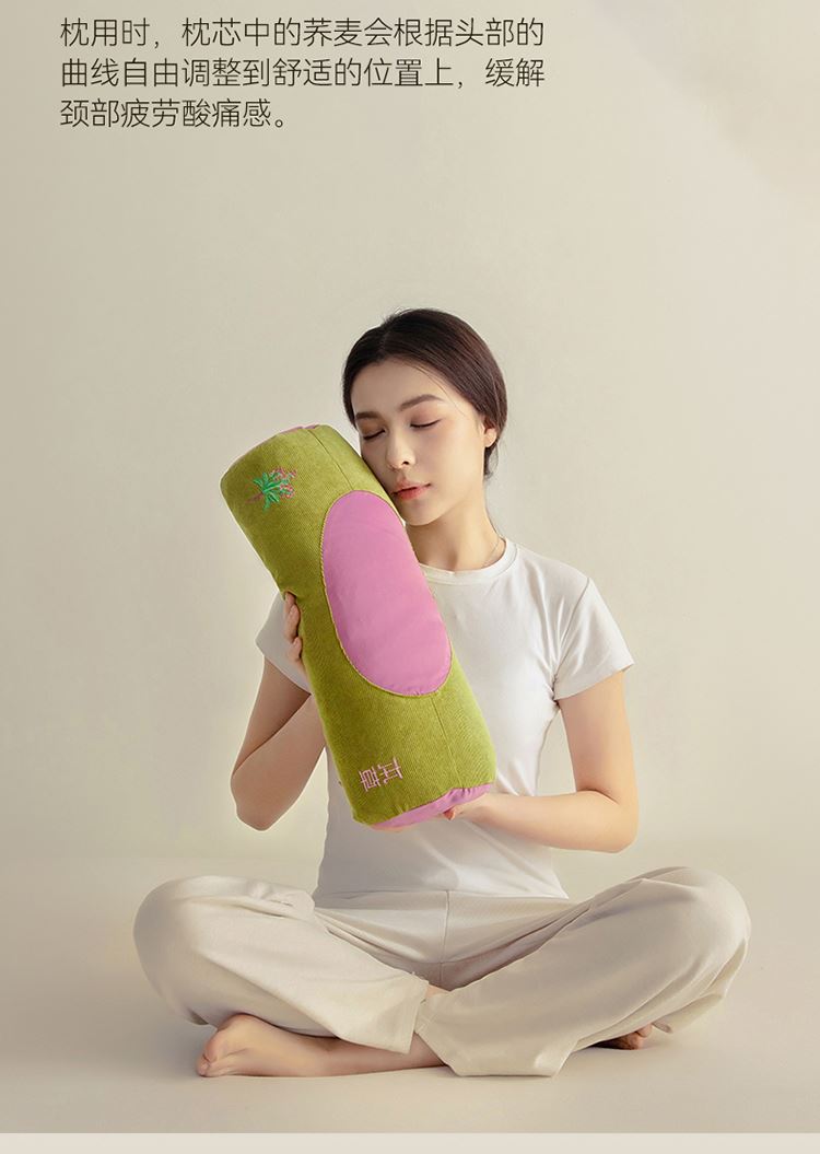 1:「草本荞麦护颈枕」疏通肩颈 揽香入眠 舒缓大椎 芳香通窍 益气草木 开郁好眠 2:天然荞麦填充流动散压 3:填充荞麦,分量足颗粒饱满均匀,具有一定硬度和流动性能,可分散头部压力,贴合肩颈稳定支撑 尺寸:45x15cm/只 重量:约1000克 包装:彩盒
