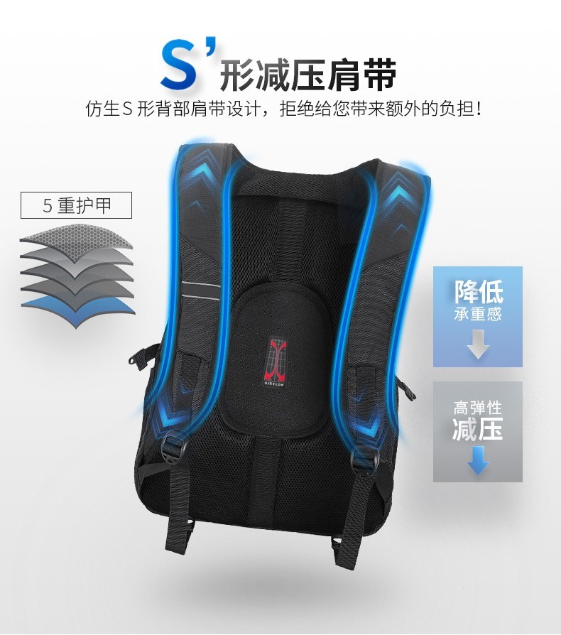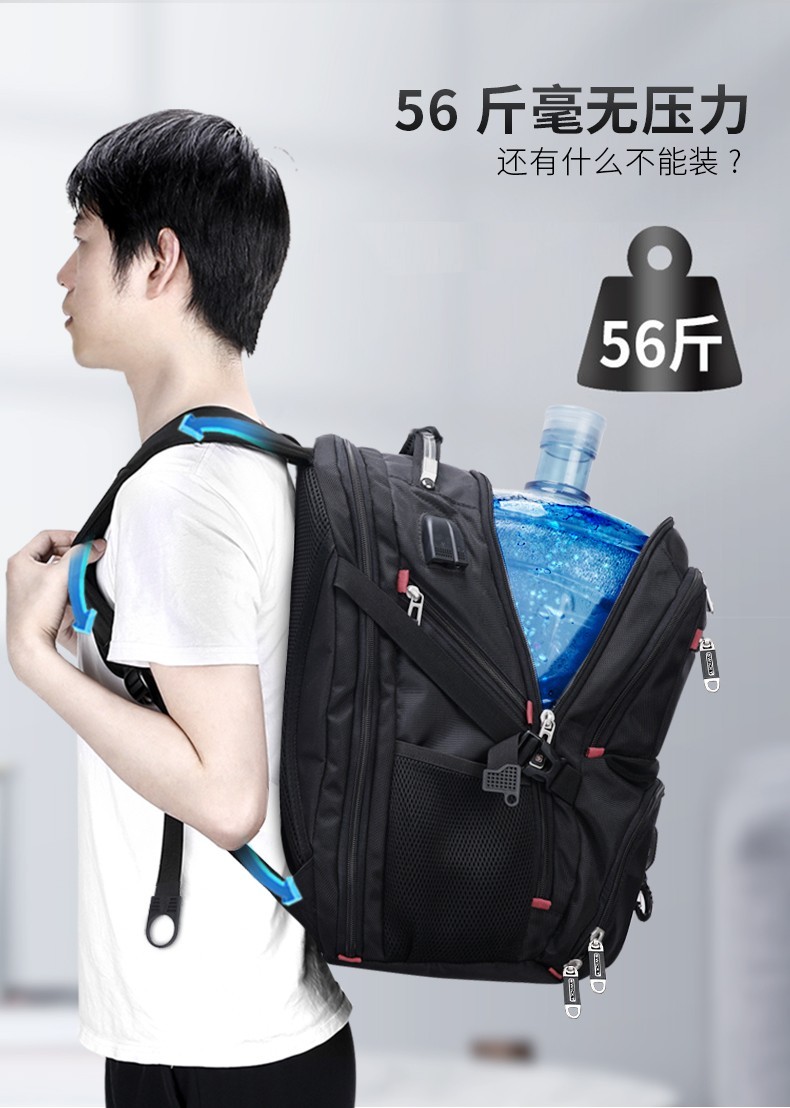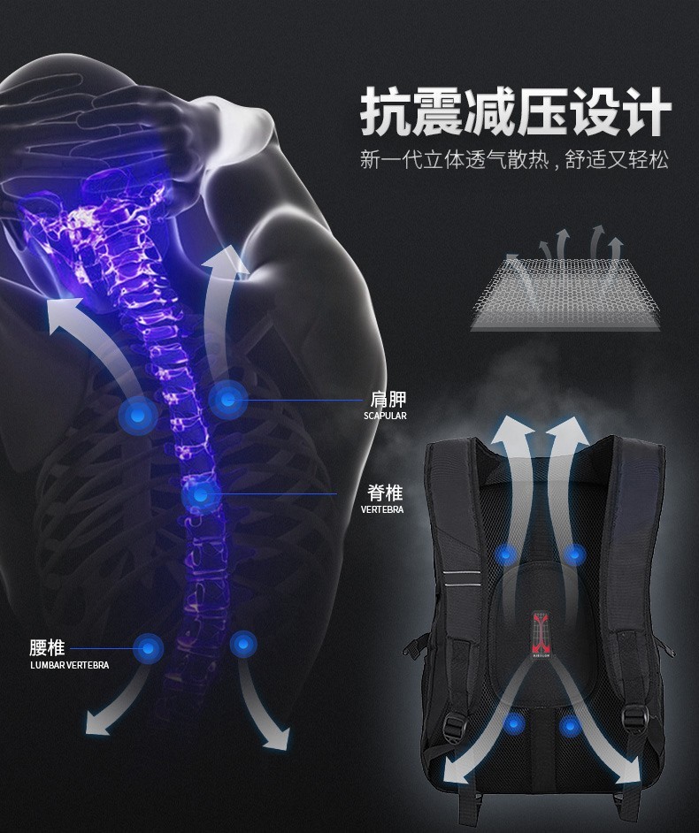 型 号:8112 大号 尺 寸: 250*350*480(MM)大号 材 质:聚酯纤维 颜 色:黑色 重 量:1.0kg 空型背负,空气流通无阻;加厚海绵,舒适解压。180°一体箱设计空间大,开合设计,便捷开合,节省时间。多功能搭载,大容量,商务出行