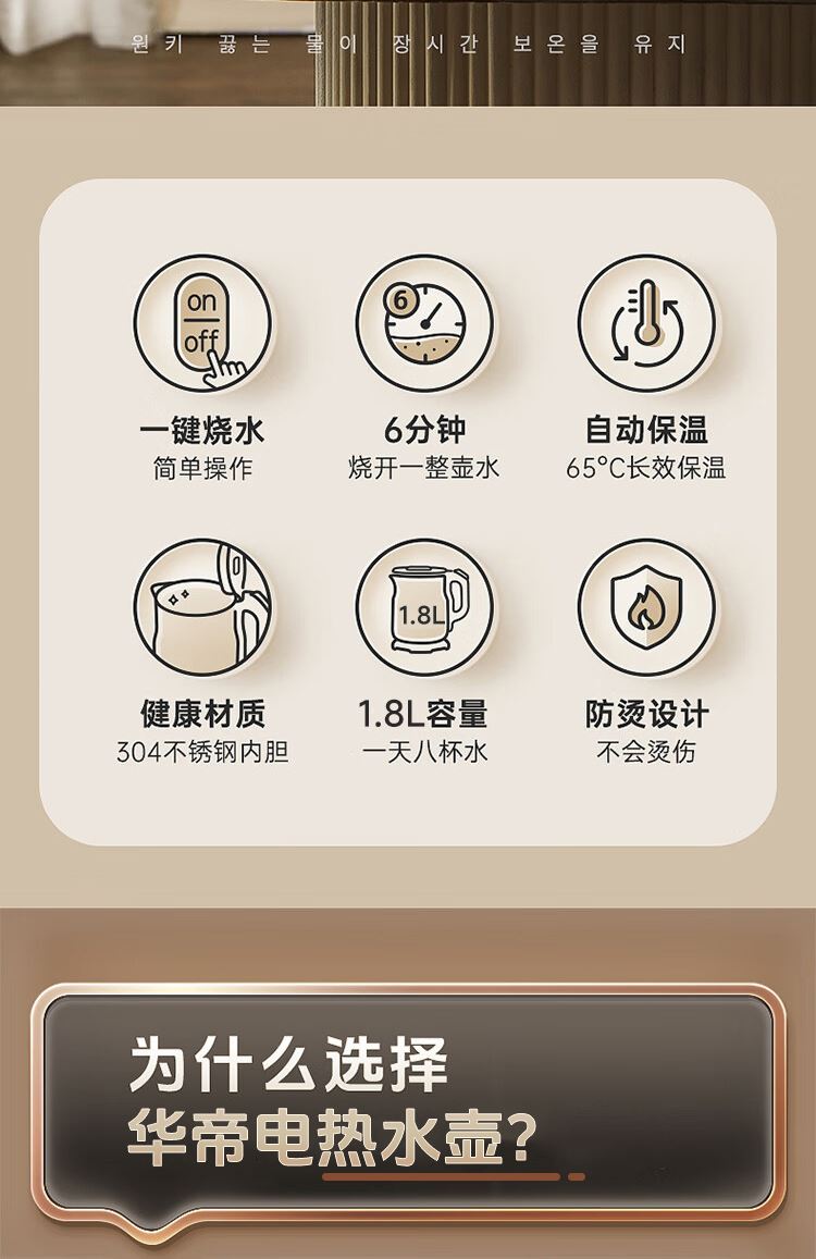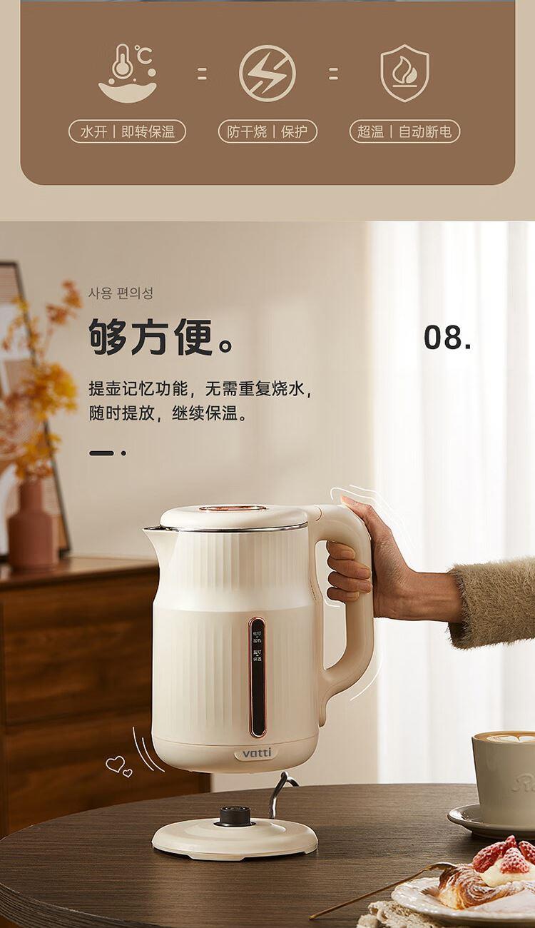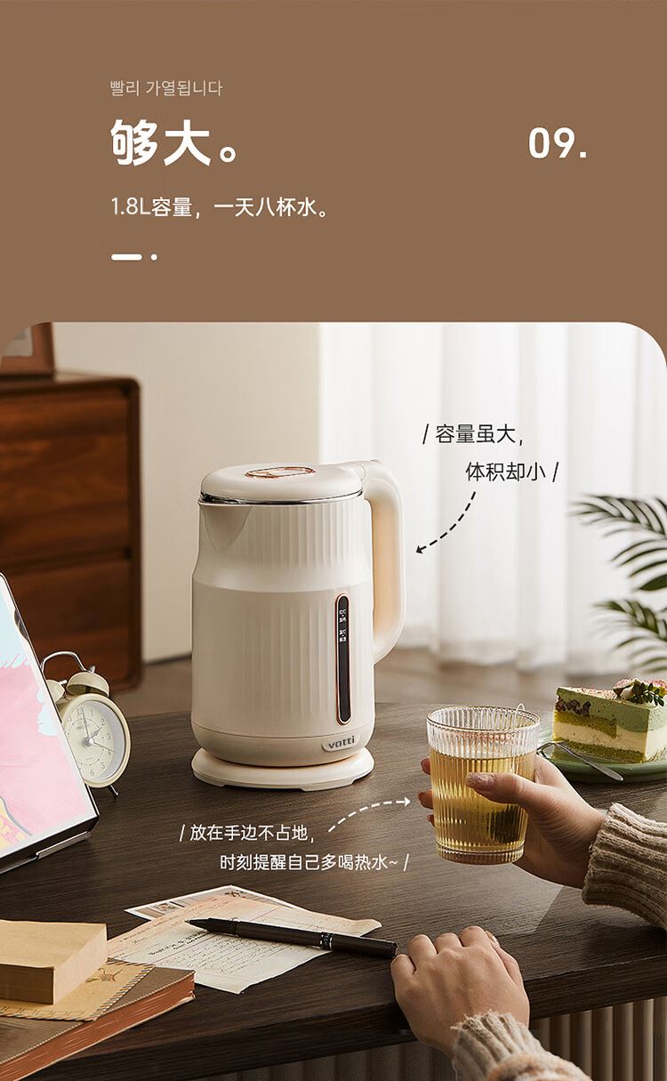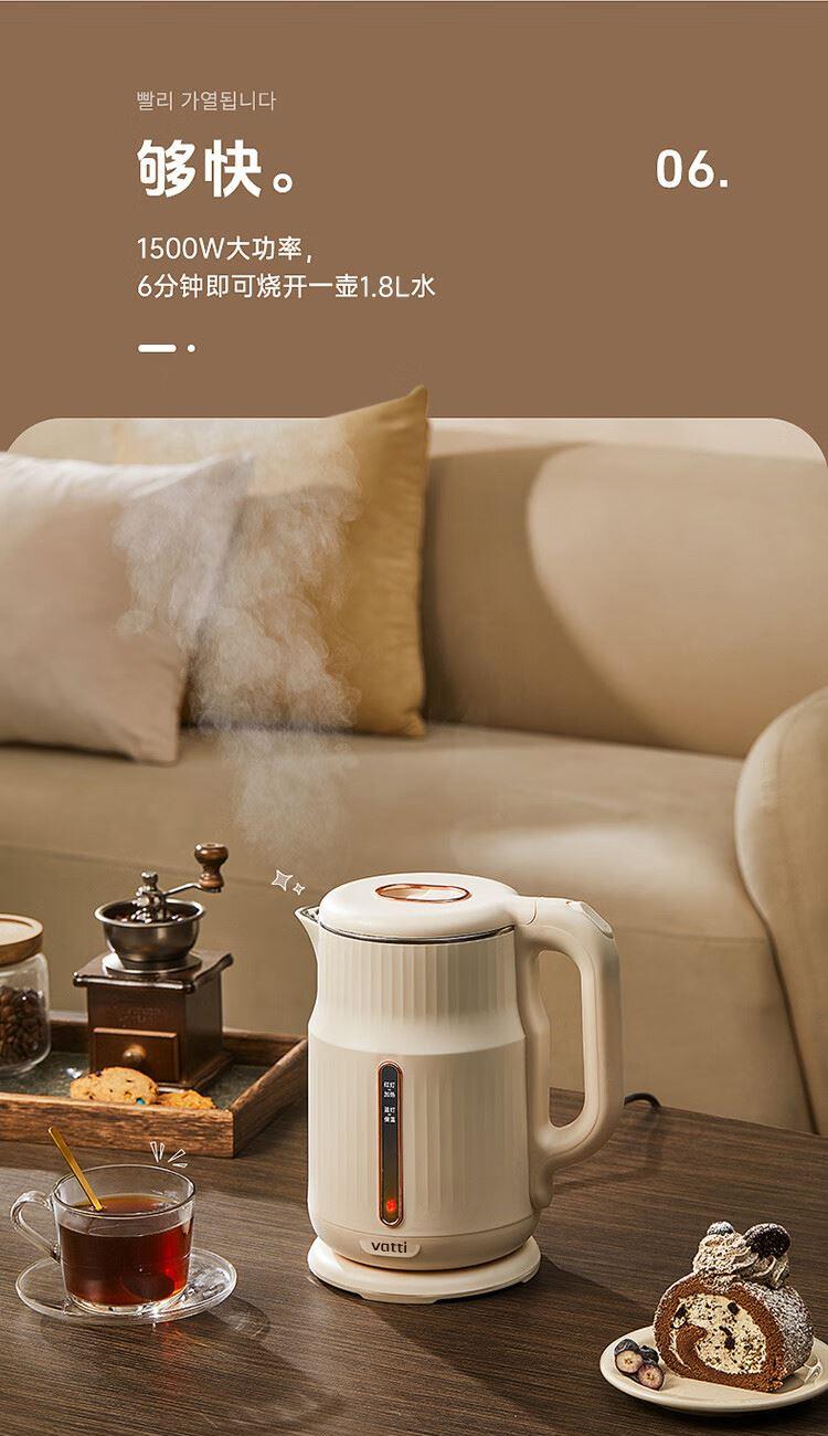 1.大容量:1.8L大容量,一次烧水满足全家畅饮。 2.极速加热:1500W大功率,迅速沸腾,无需漫长等待。 3.安全材质:精选304不锈钢,食品级接触材质 4.坚固耐用:优质不锈钢打造,经久耐用,品质之选。