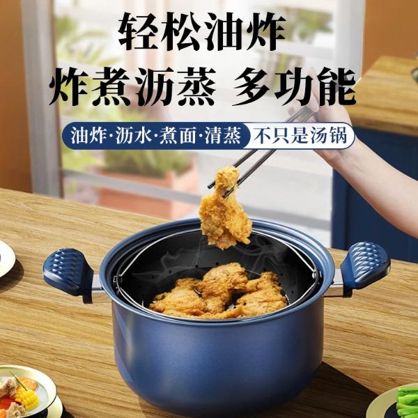 规 格:6.5L带网篮 材 质:优质精铁 彩盒尺寸:L41*W30*H16.5CM 1,精铁锅身,内置可旋转沥水篮 2,钻石纹胶木侧耳、盖珠,喷软漆。(另加不锈钢提手) 3,水性黑色不沾,外彩色高温漆 4,锅耳及盖珠采用砖石切割设计美观实用