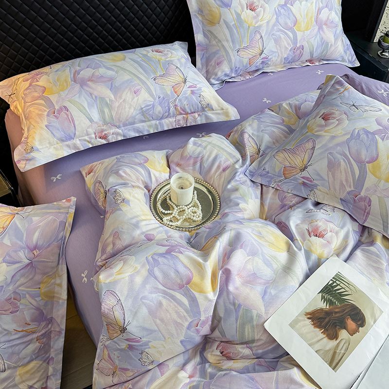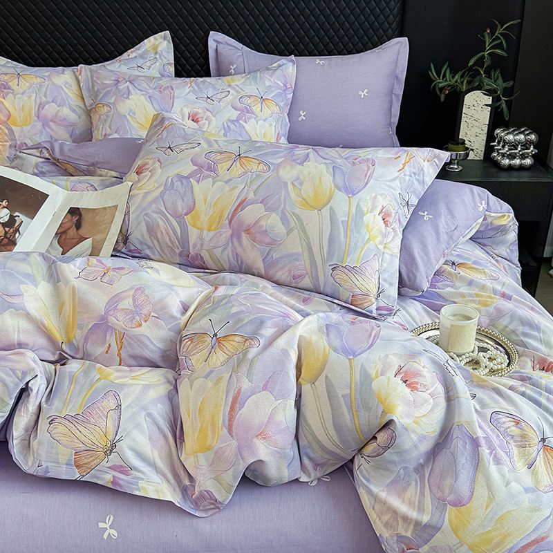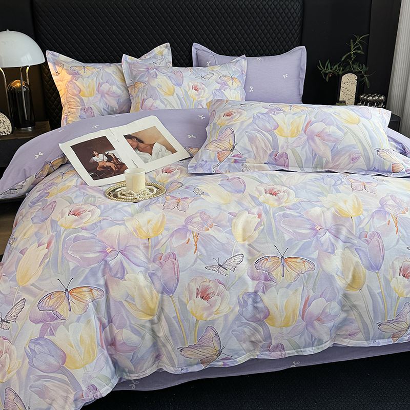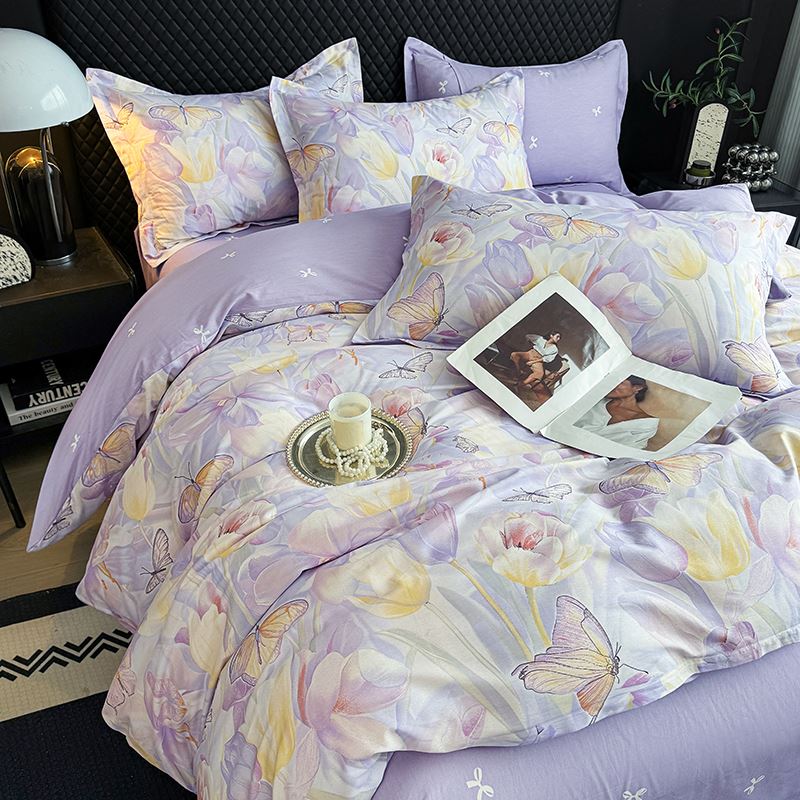 名:全棉四件套 面料:全棉 尺寸:被套200*230cm*1 床单230*245cm*1 枕套48*74cm*2 包装:彩盒 工艺:活性印花