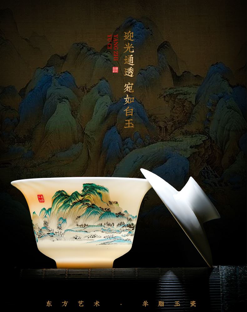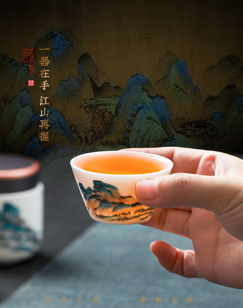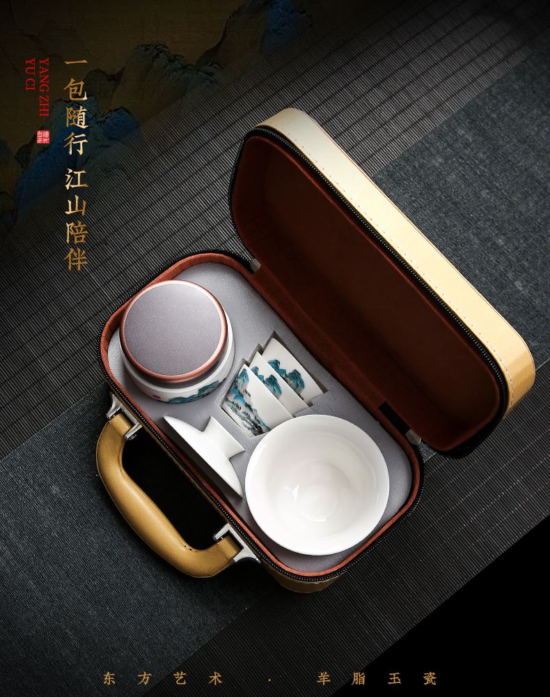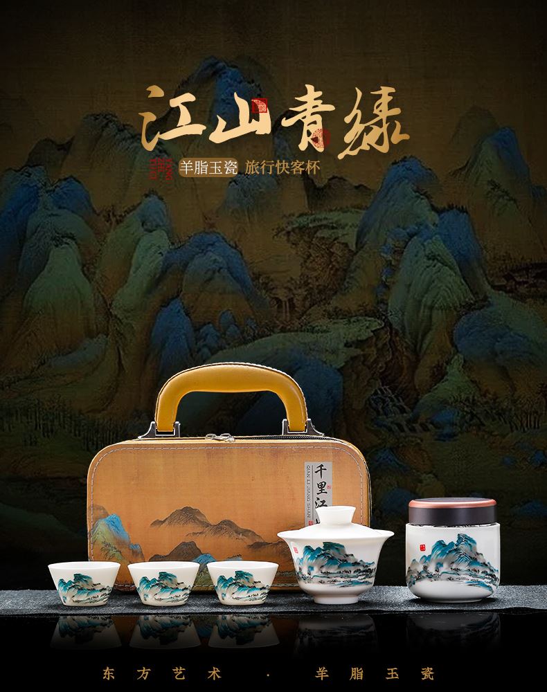 瓷伽什江山青绿羊脂玉旅行茶具