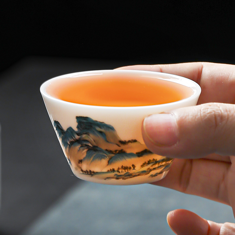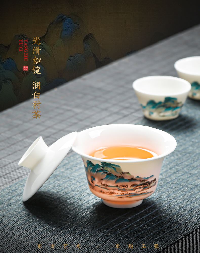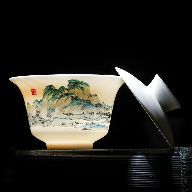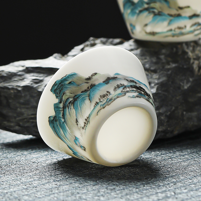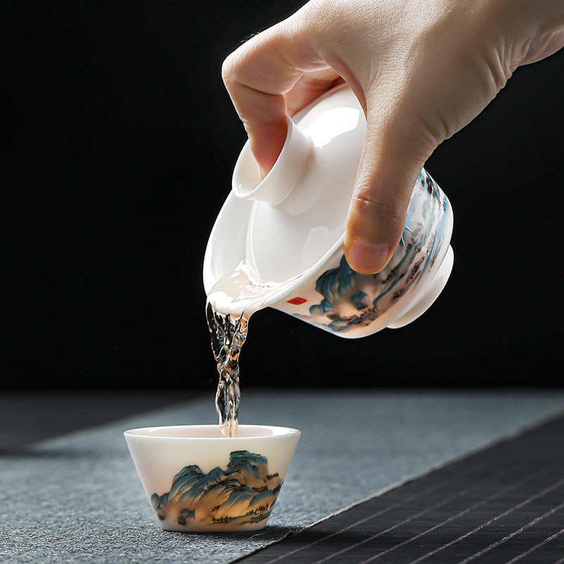 瓷伽什江山青绿羊脂玉旅行茶具