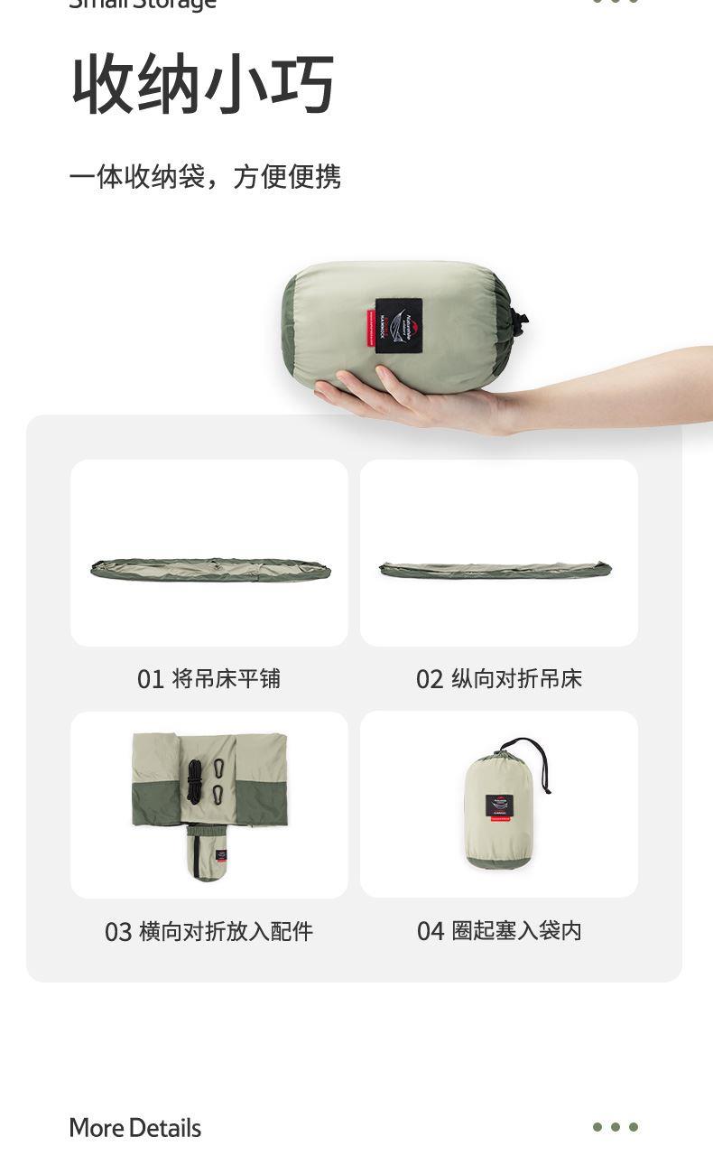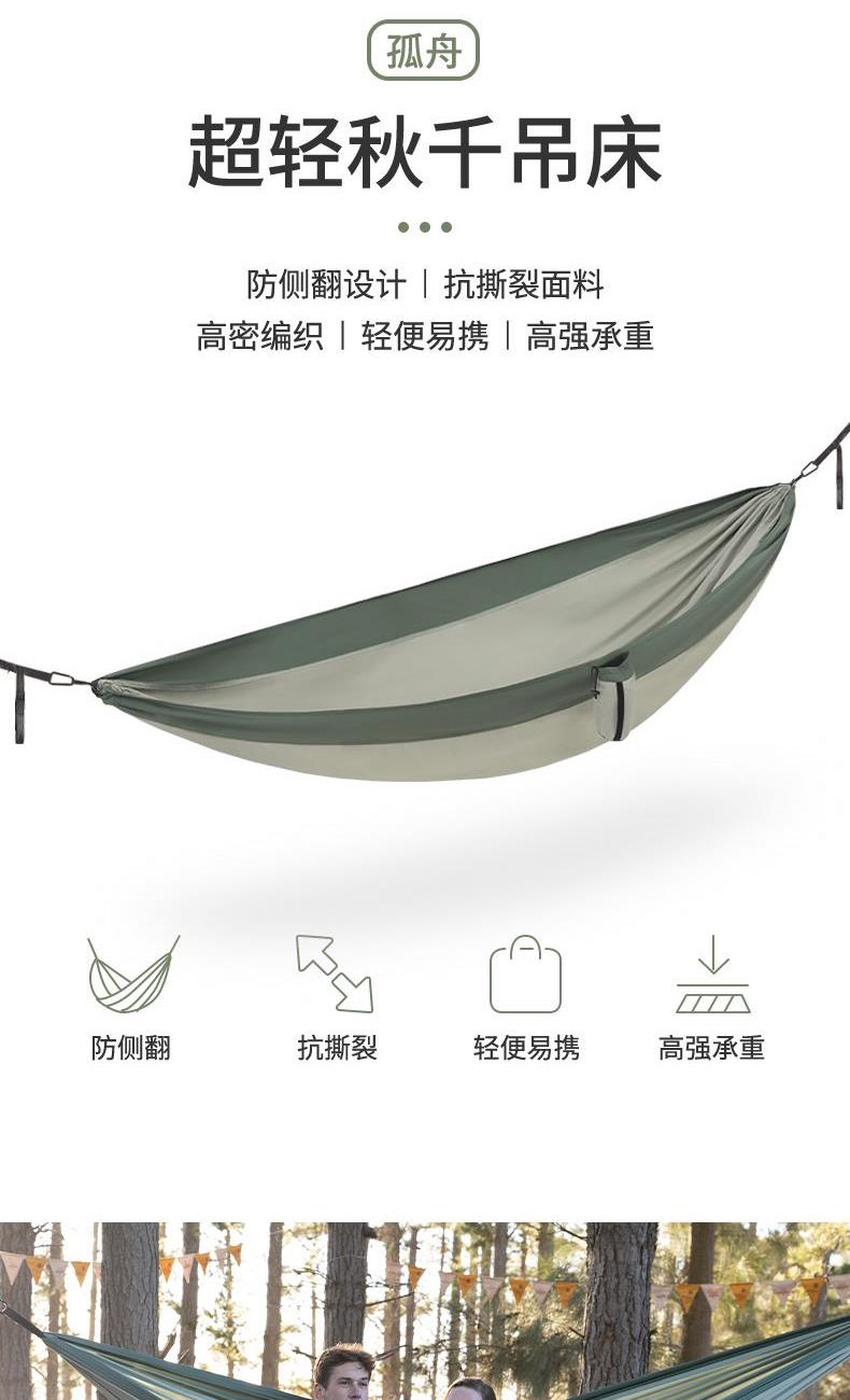 Naturehike升级款超轻秋千吊床防侧翻野外野营单人吊床