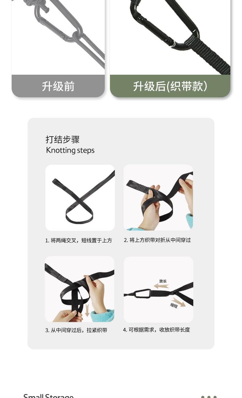 挪客DC-C08-超轻秋千吊床 建议承重:400斤以内 面料:340T春亚纺 颜色:浅豆绿 魅力橙 孔雀蓝 重量:单人约600g双人约690g 升级款 290*148(单人) 290*180(双人) 涤纶织带2.1m/根 涤纶织带2根、登山扣2个
