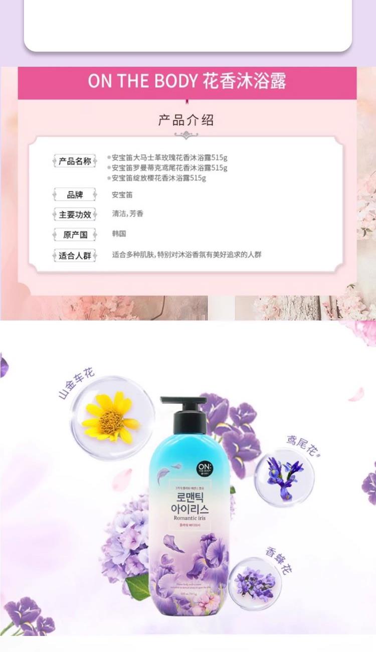 安宝笛罗曼蒂克鸢尾花香沐浴露515g*1瓶 安宝笛自然薰衣草香舒柔润体乳400ml*1瓶 安宝笛自然薰衣草香舒柔护手霜75ml*2支 安宝笛大米米糠磨砂泡沫洁面膏150ml*1支 安宝笛薰衣草清爽洁肤皂90g*1块