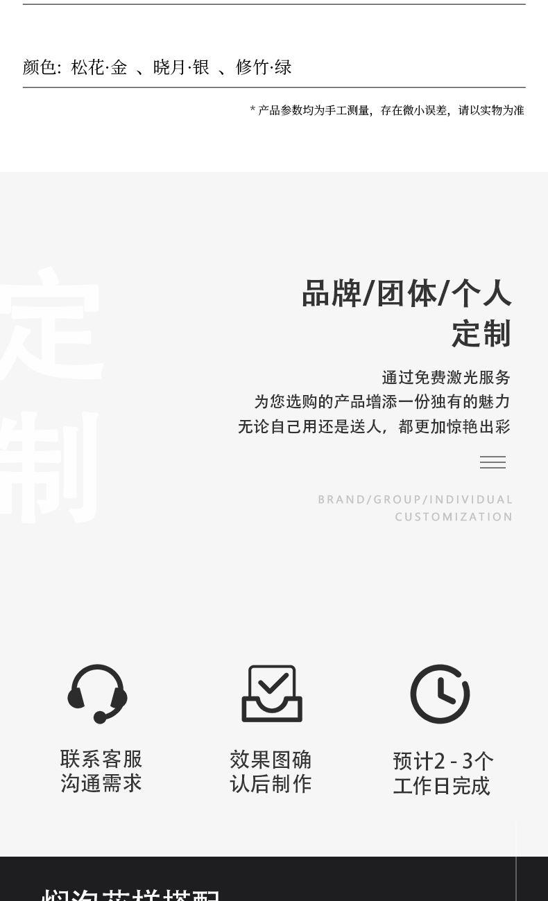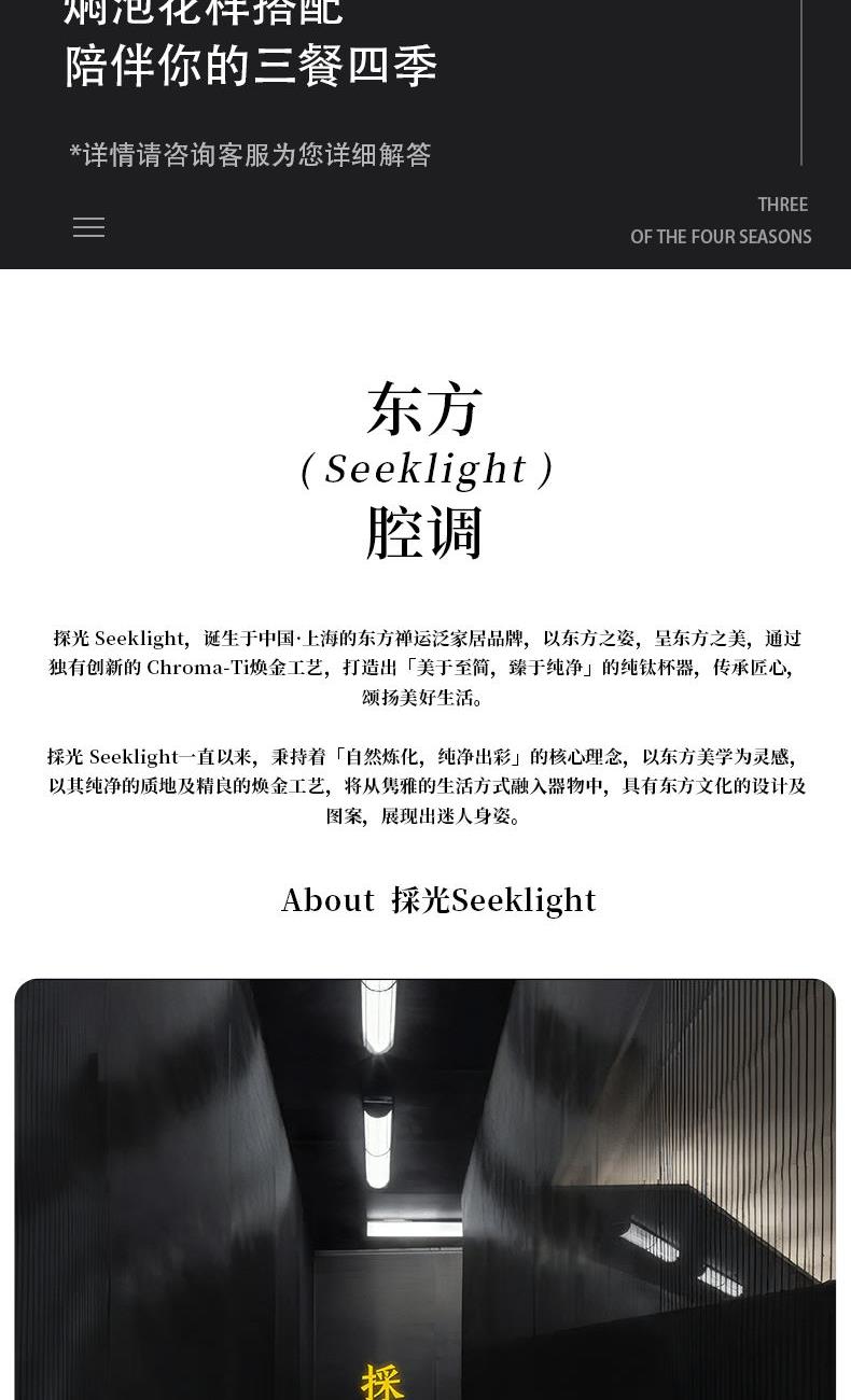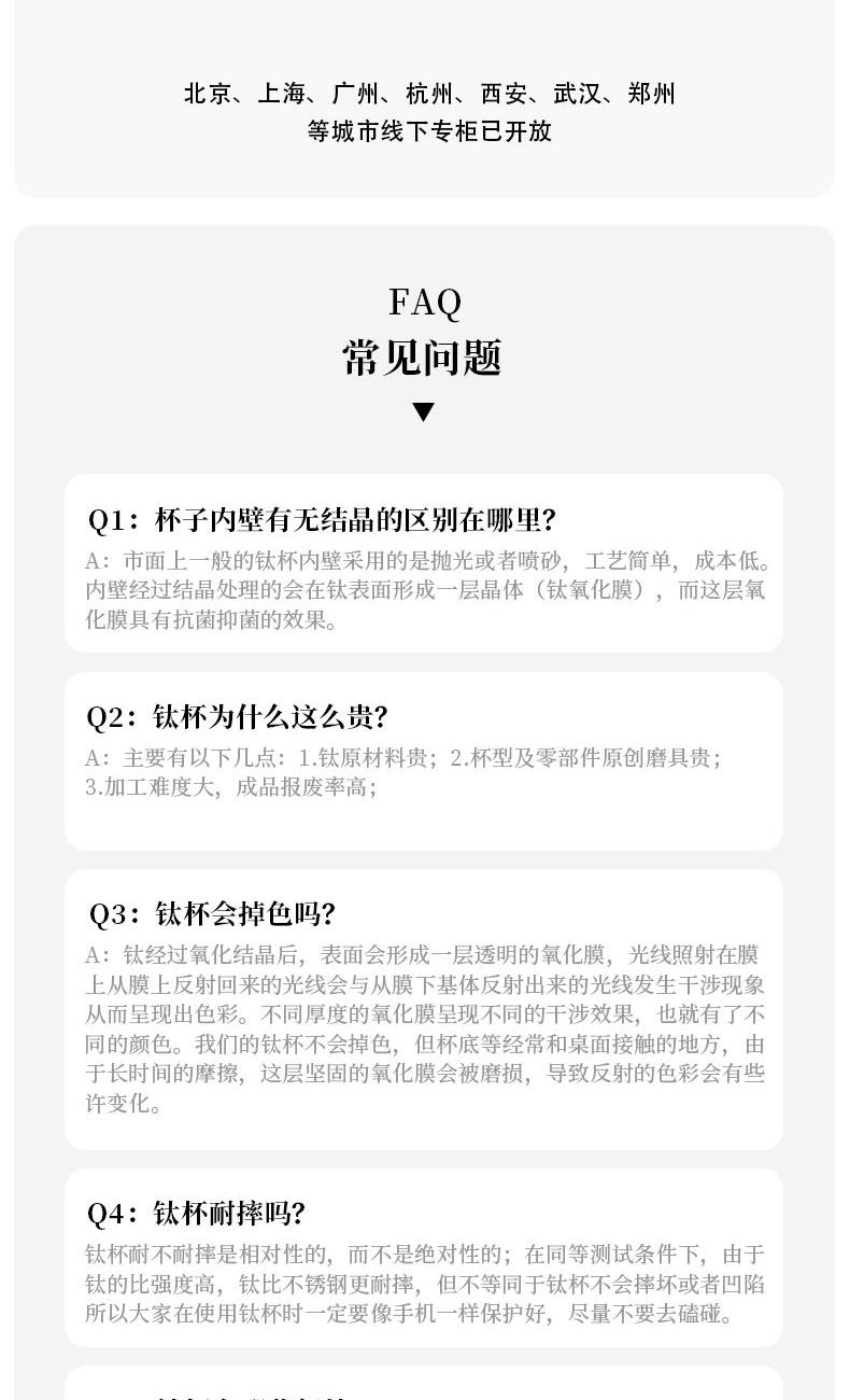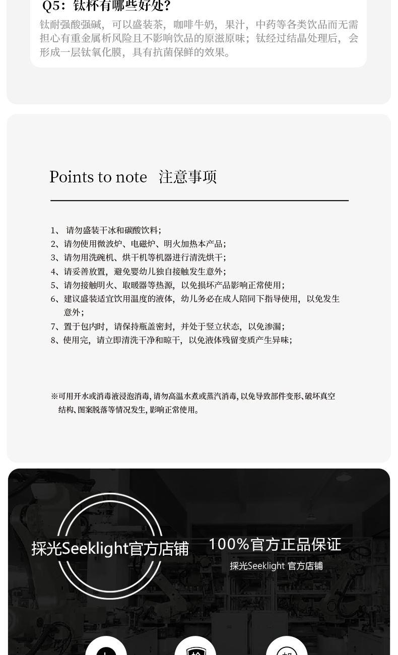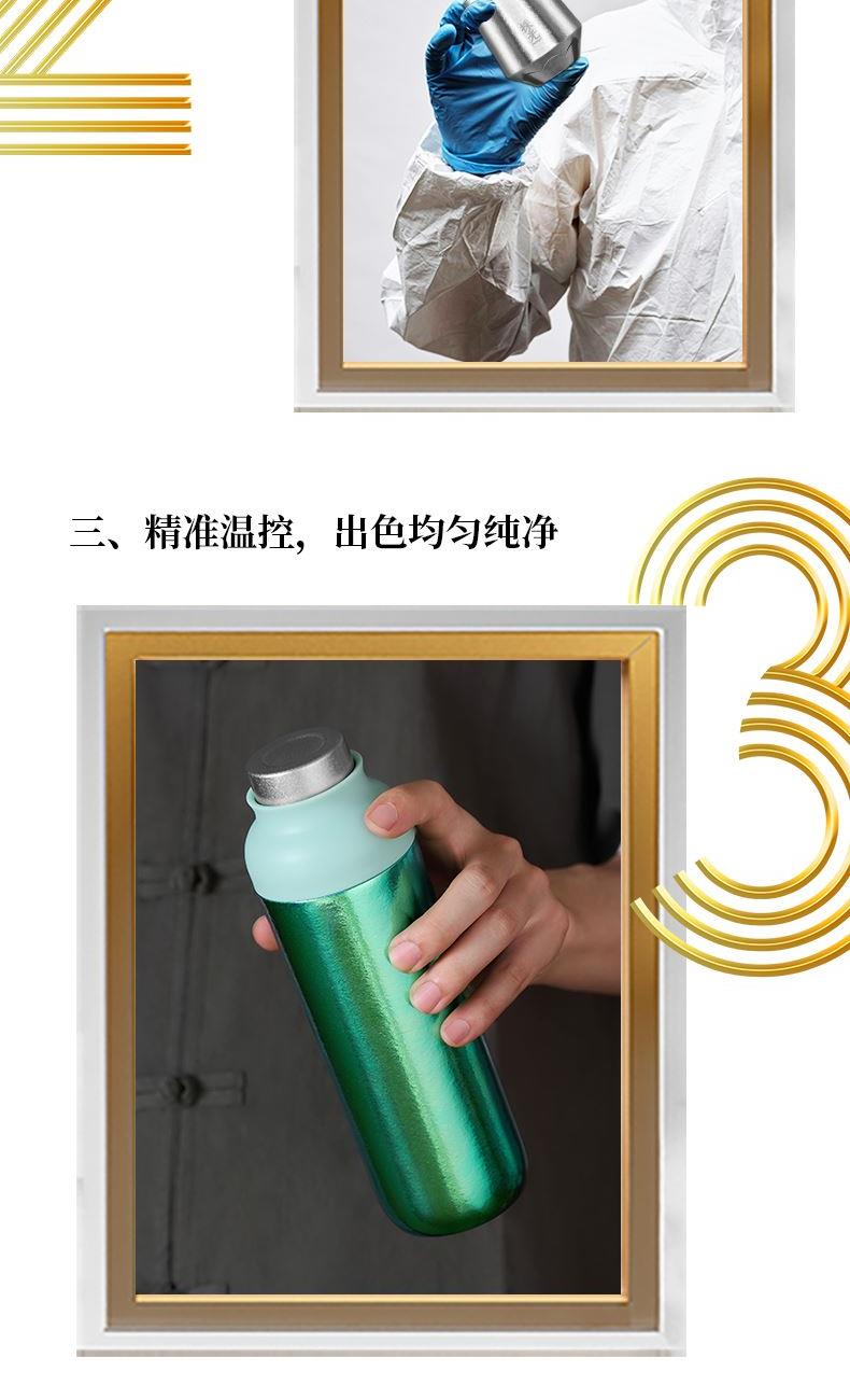 一键开合,单手便捷操作 外盖双层,隔热防烫,精致小茶杯 纯钛材质,内外同品质纯钛,全覆盖结晶,内壁银色结晶,茶汤色泽尽显,耐蚀耐用 无喷砂无油漆无着色剂,焖泡再久不变味,色香味纯享 型号:DBCQ-0401/0405/0406 尺寸:72.5*72.5*225 mm 重量:约280g 容量:400ML 颜色:远山 · 蓝 修竹 · 绿 松花 · 金