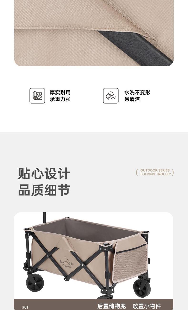 产品尺寸:78×44×57-92cm 收纳尺寸:25×16×63cm 产品材质:聚酯纤维+钢管 产品颜色:昆仑雪松 产品包装:邮购盒 聚拢折叠,小巧收纳。 双层环保牛津布,内兜容量75L。 加长拉杆不碰脚,内置弹簧不倒地。 结实车架,承重可达150斤。