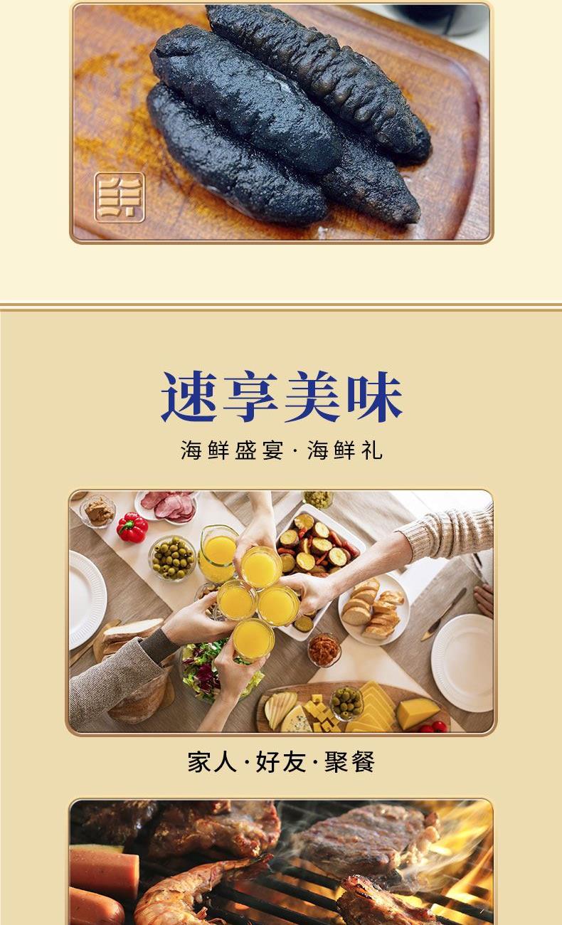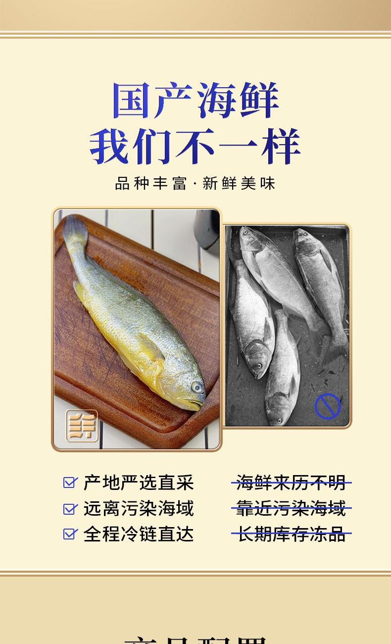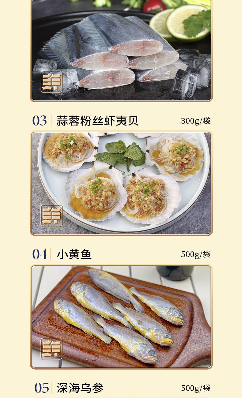 小黄鱼500g*2袋 墨鱼花250g×1袋 深海乌参500g×1袋 蒜蓉粉丝虾夷贝300g×1袋 带鱼段800g×1袋