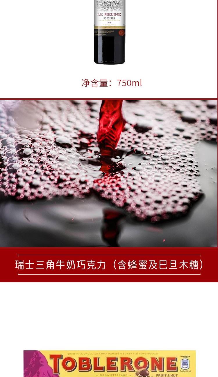 法国慕里磨坊干红葡萄酒南法AOC 750ml 瑞士三角牛奶巧克力(含蜂蜜及巴旦木糖)100g 瑞士三角黑巧克力(含蜂蜜及巴旦木糖)100g 意大利维趣多可可榛子味饼干225g 意大利维趣多全麦饼干225g 印尼皇冠丹麦巧克力味腰果曲奇饼干200g罐装 越南茜贡小姐综合蔬果干200g 马来西亚滴朵蓝山风味咖啡90g 马来西亚滴朵原味白咖啡90g 越南进口丹帝即食燕麦片1000g 马来西亚可康牌多口味果汁糖350克 名物精美包装盒:360*360*190mm